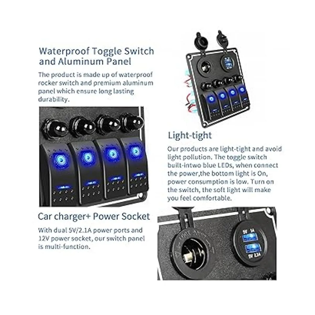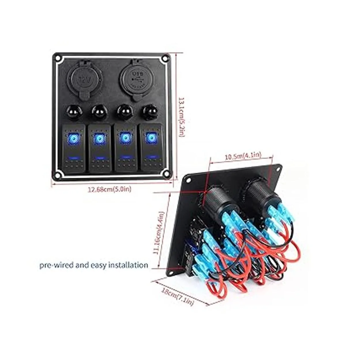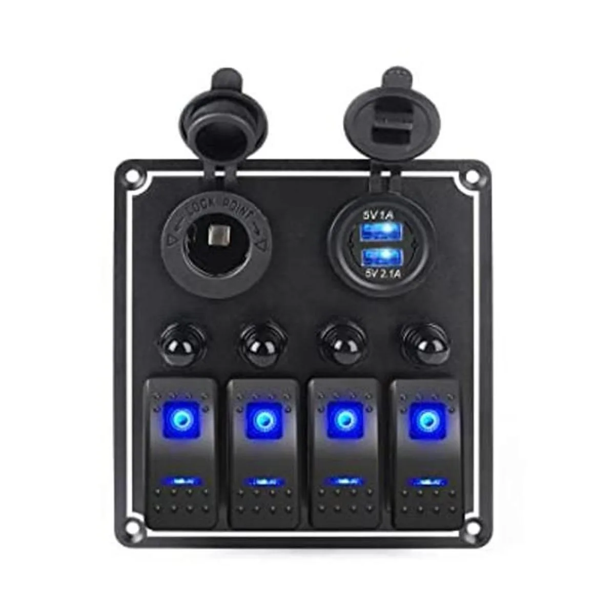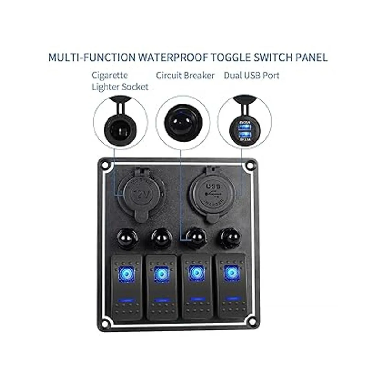 Panel de interruptor basculante de 12 V24 V, panel de interruptor impermeable con cable de 4 bandas con cargador USB, protección de sobrecarga para automóvil, caravana, SUV, barco, vehículos marinos, camiones