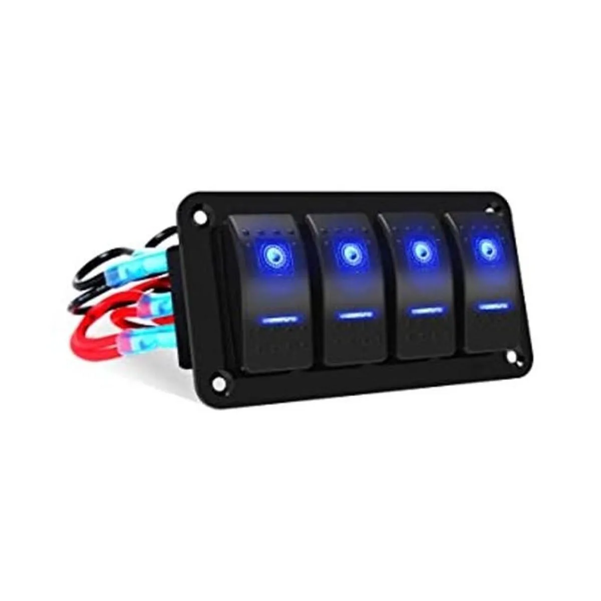 Panel de interruptor basculante de 4 bandas de aluminio impermeable de 12 V24 V, interruptor de encendido y apagado, panel de interruptor precableado para barco marino, automóvil, caravana, camión