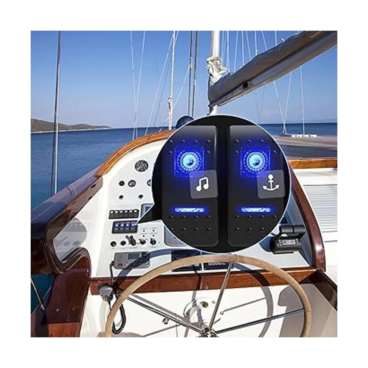 Interruptores impermeables y panel de aluminio: el artículo está hecho de interruptores impermeables y panel de aluminio, que es más resistente y duradero que el panel de plástico. El artículo tiene una tecnología única en la estructura impermeable. La película de silicona ultrafina evita que el agua entre en el interior del panel del interruptor, asegurando que la cavidad interior esté seca, evitando cortocircuitos y haciendo que los interruptores basculantes del barco sean más seguros durante el uso.