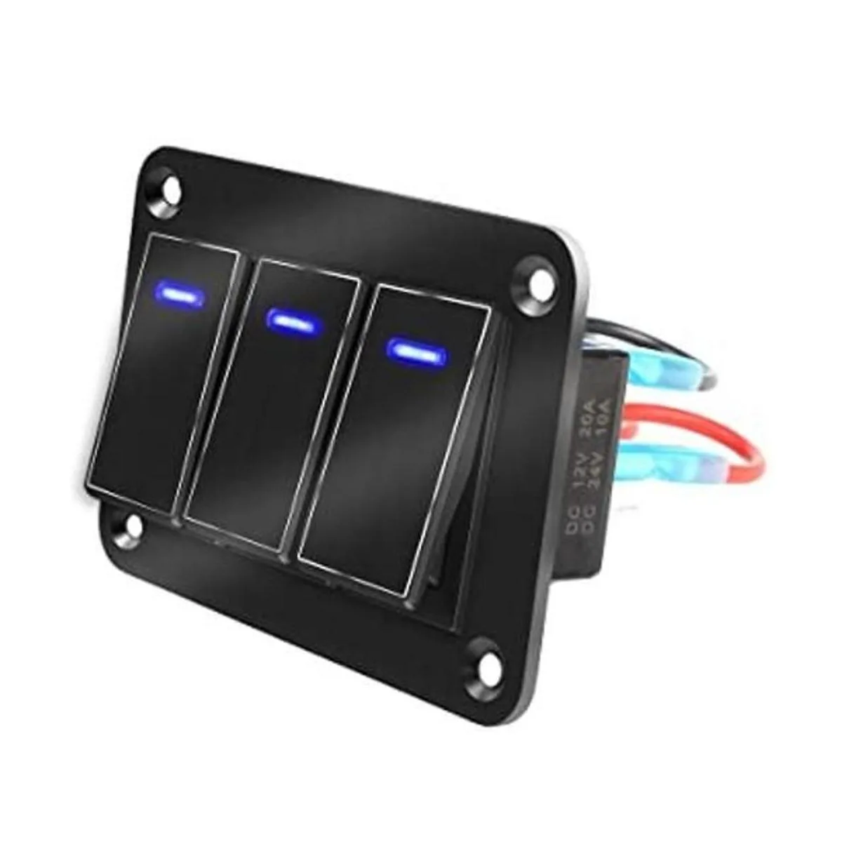 Panel de interruptor basculante, panel de interruptor de palanca de aluminio de 3 bandas, panel de interruptor de 12 V24 V, interruptores de automóvil de 3 pines, panel de interruptor LED azul para automóvil, camión, motocicleta, Jeeps, RV UTV