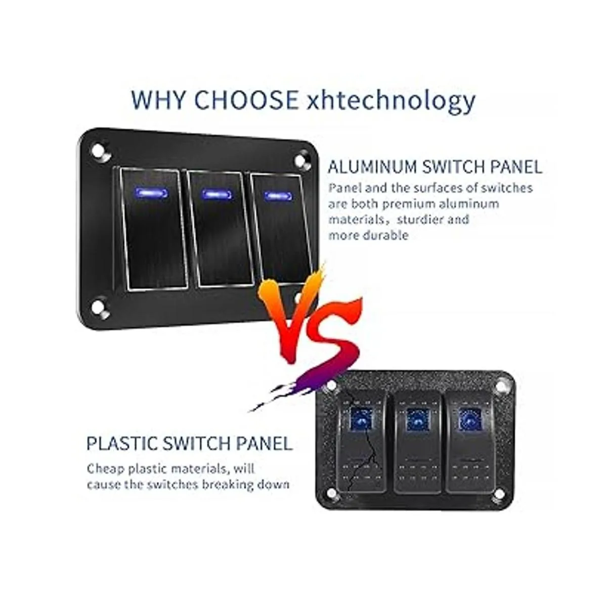 Interruptores y paneles de aluminio Hecho de tapas de interruptor de aluminio y panel de aluminio, nuestro panel de interruptor basculante es más resistente y duradero que el plástico, estos interruptores tienen un tiempo de servicio más largo, ahorrarán mucho dinero de reemplazos.