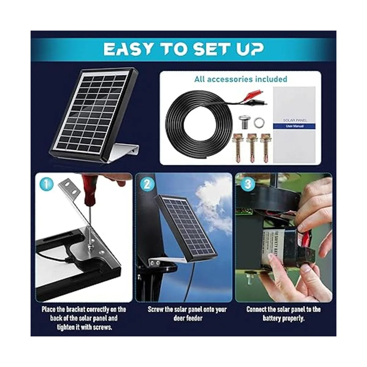 Resistente a la intemperie para uso en exteriores: el panel solar para comedero de ciervos está diseñado para uso en exteriores, ya que la superficie del vidrio es impermeable y resistente a la nieve.