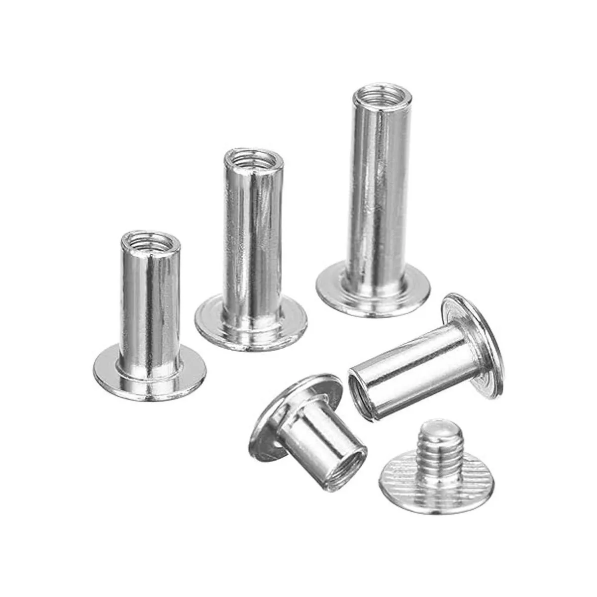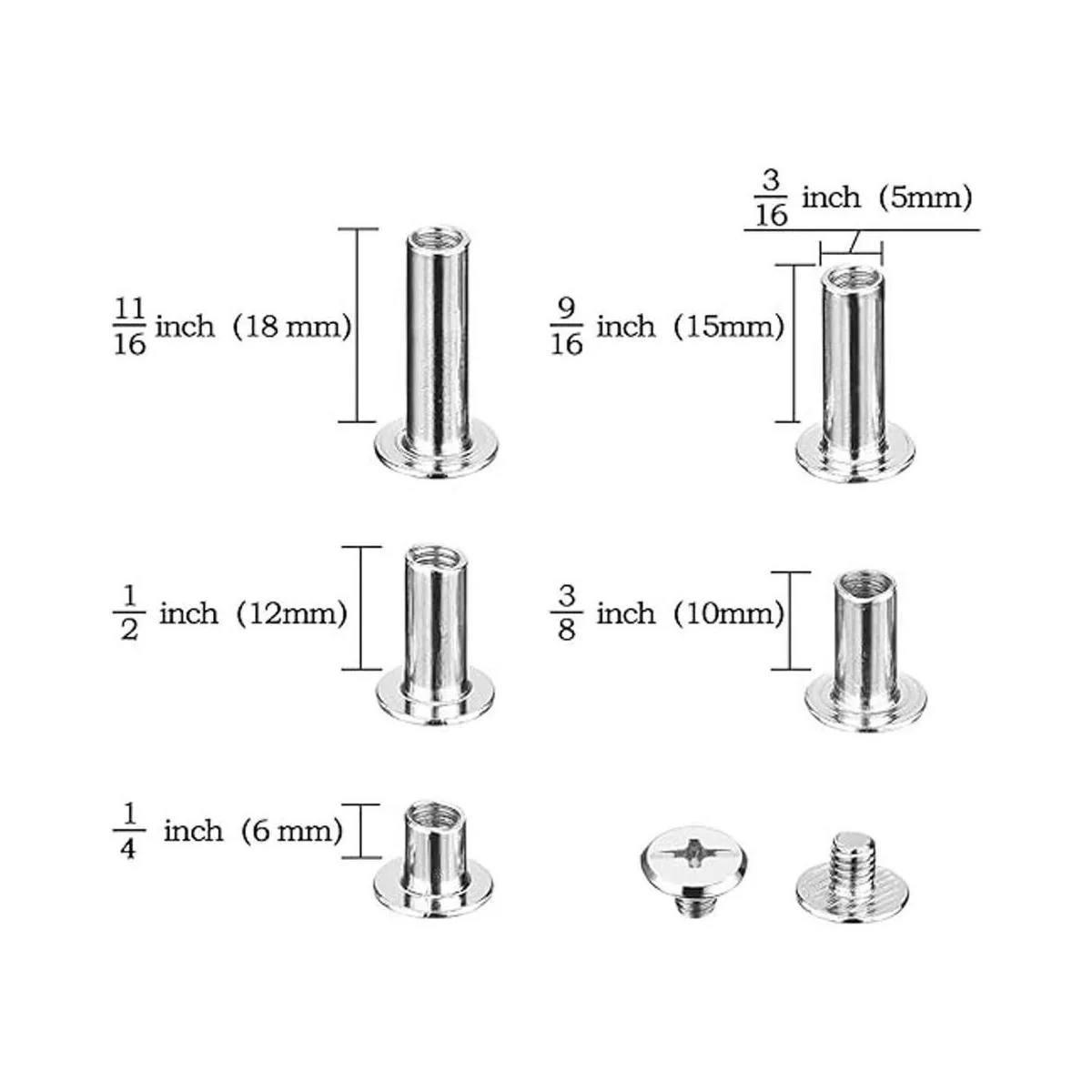 Pangda Juego de 80 tornillos de poste de encuadernación Chicago Kit surtido de metal redondo cabeza cruzada tornillo poste remache clavo botón Chicago para decoración de cuero DIY encuadernación
