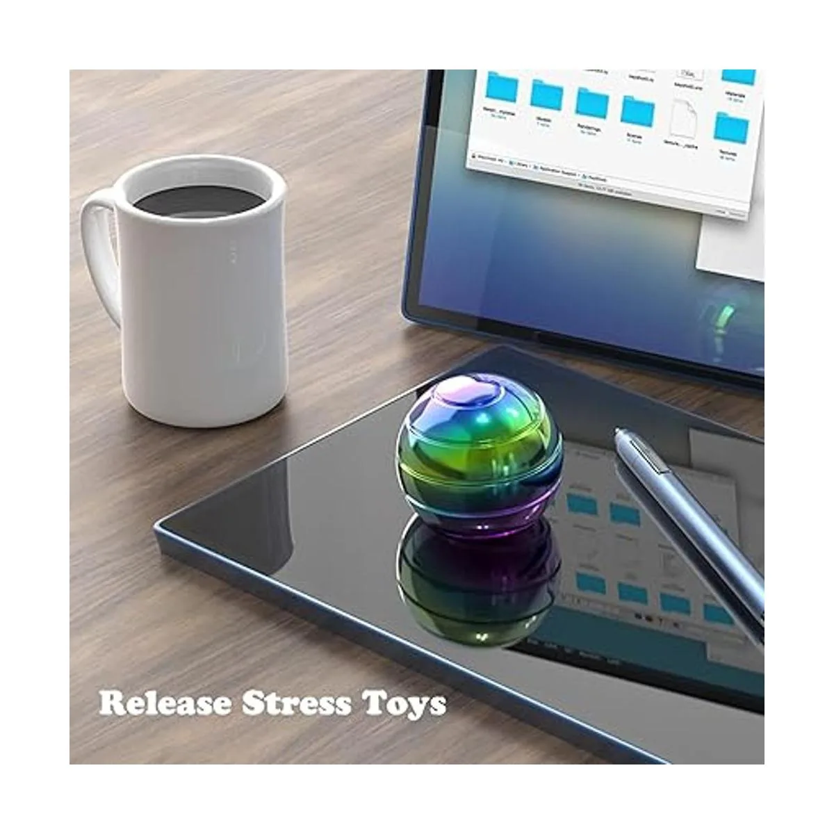 Panshi Juguete de escritorio cinético de metal, ilusión óptica, bola superior giratoria, regalo único para aliviar el estrés ejecutivo para adultos multicolor