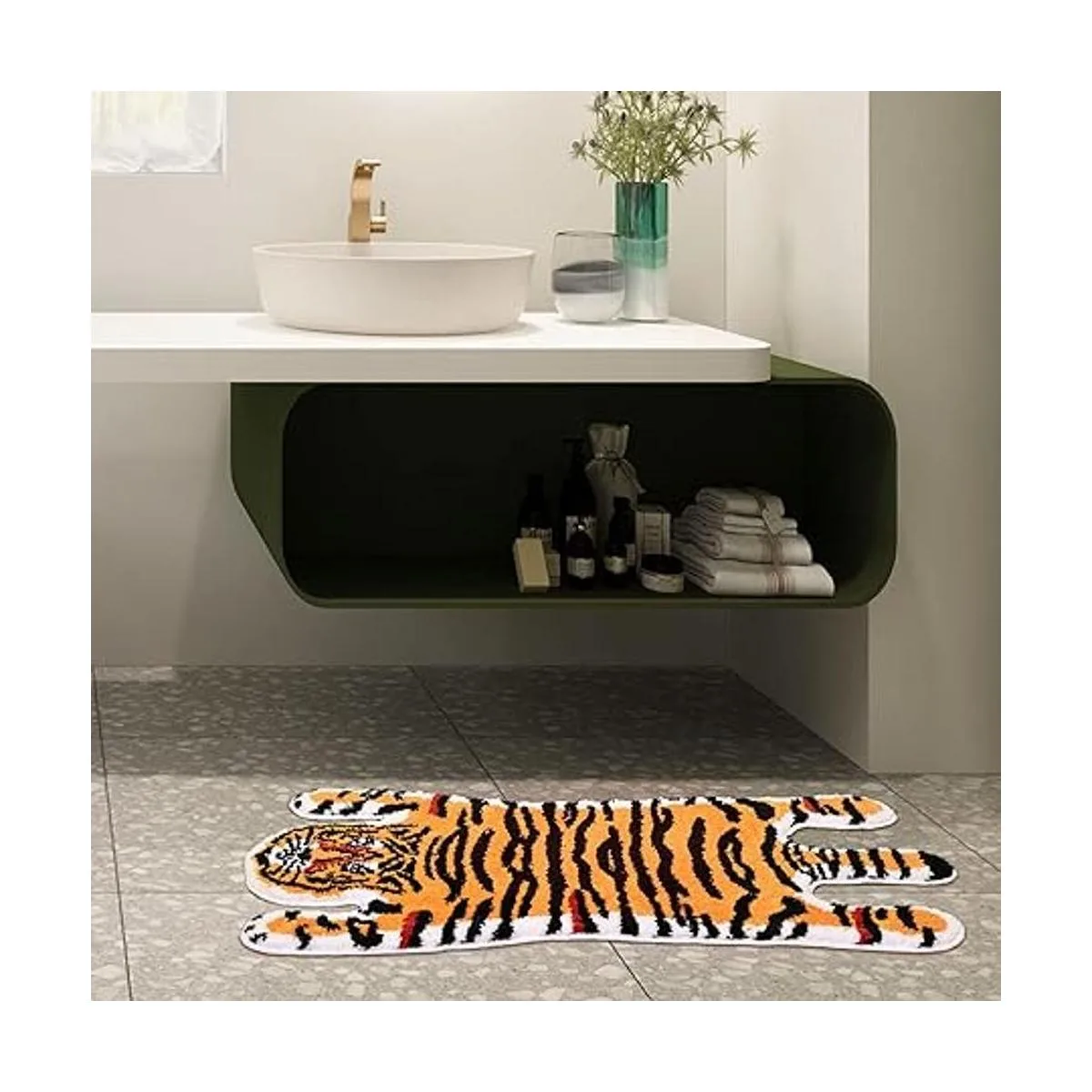 Múltiples escenas: esta gran alfombra de felpa de tigre se puede utilizar para duchas de baño, bañeras, sala de estar y tapetes de cocina. También puedes dar esta divertida alfombra impresa como un regalo a tus amigos.