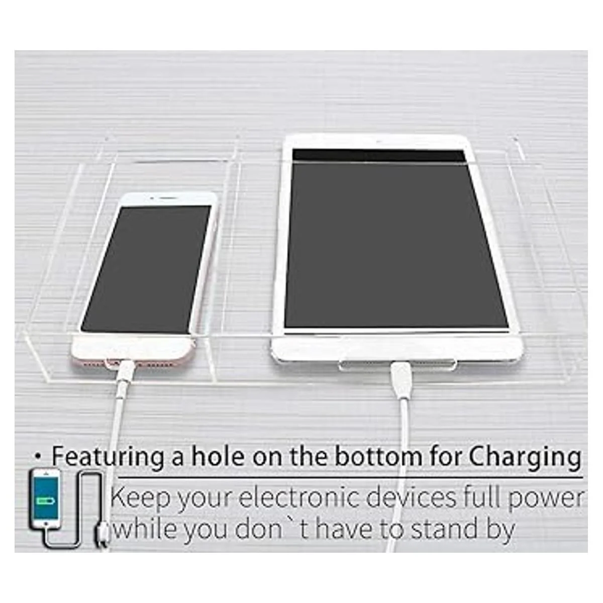Diseño transparente de moda: grosor mejorado: 0.118 in, sólido para mayor durabilidad Bien fabricado con acrílico transparente y presentado por minimalista, este soporte de control remoto es transparente para permitirte ver los artículos y dispositivos, incluso el estado de carga de teléfonos y tabletas sin sacarlo. Con el acabado suave y la forma elegante, es muy práctico pero decorativo para el uso diario.