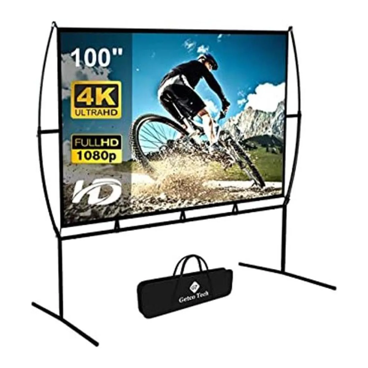 Pantalla de proyector con soporte plegable portátil de 100 pulgadas 169, pantalla de proyección HD 4K de doble cara para interiores y exteriores, pantalla de películas para cine en casa