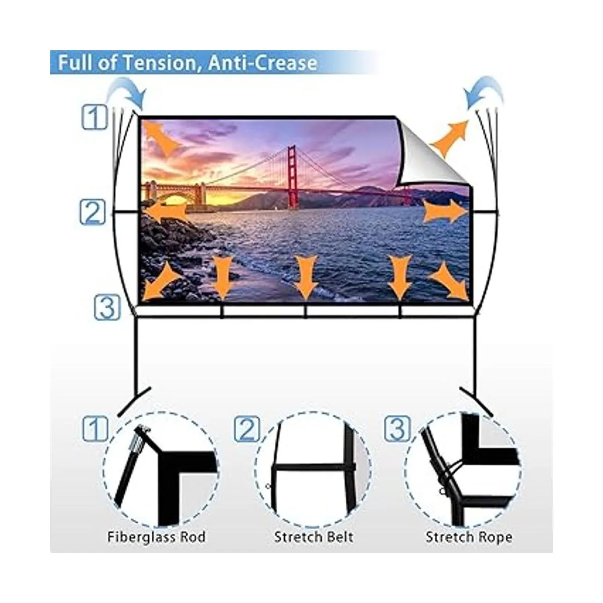 Materiales mejorados: Nuestra pantalla de proyector está fabricada con metal resistente a la corrosión y varilla de fibra de vidrio para una mayor durabilidad y vida útil. Es ideal para uso en interiores o exteriores.