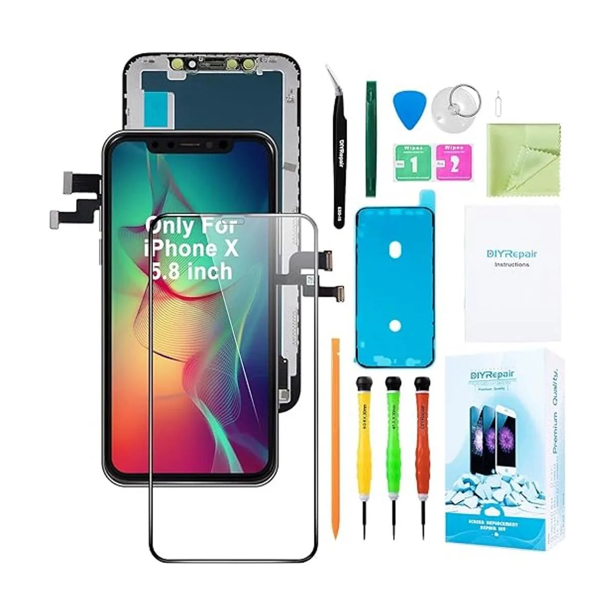 Pantalla de repuesto premium para iPhone X 5.8 pulgadas Kit completo de reparación de pantalla táctil 3D con adhesivo impermeable, vidrio templado, herramientas, instrucciones idioma español no garantizado modelo A1865, A1901, A1902