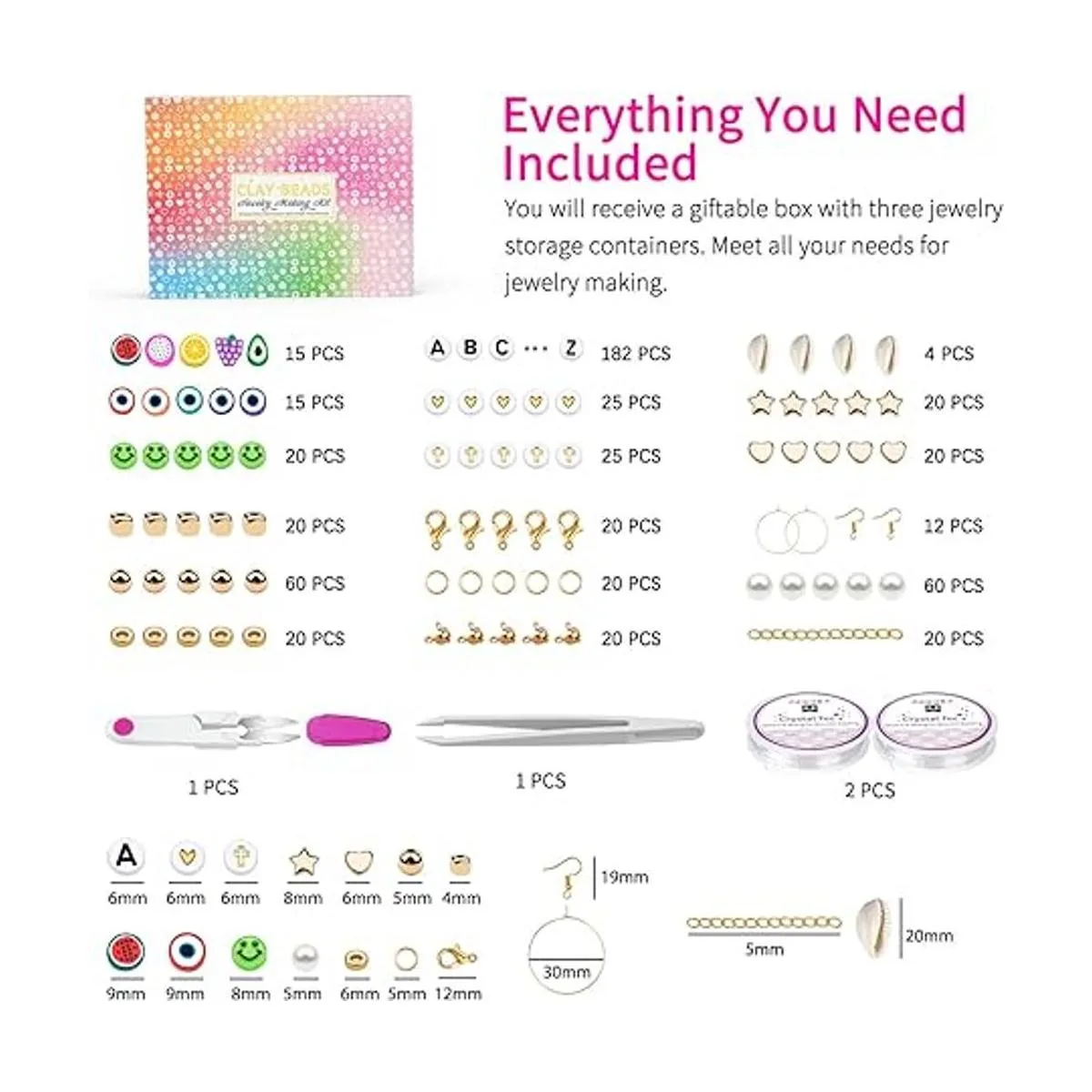 Elección de regalo de arte y manualidades: exquisita caja de regalo contiene todo para una pulsera de cuentas de arcilla que hace manualidades. Es un gran regalo para niñas de 6 a 14 años, adolescentes y preadolescentes. Bonito kit de manualidades para niños de 6 a 12 años como regalo de Navidad, regalos de cumpleaños.