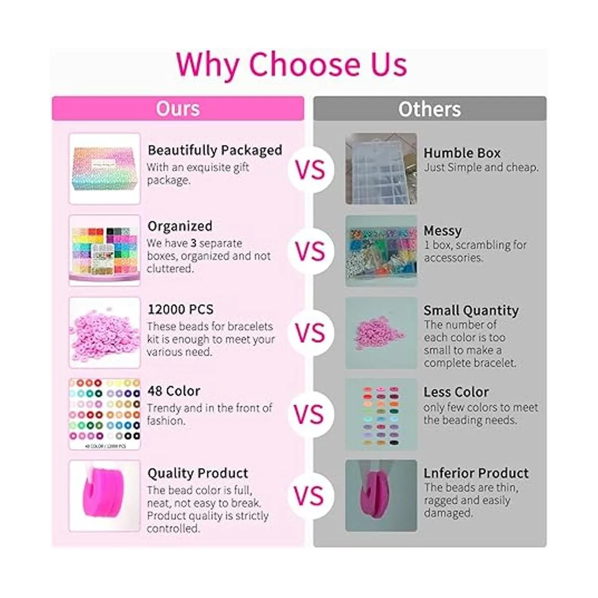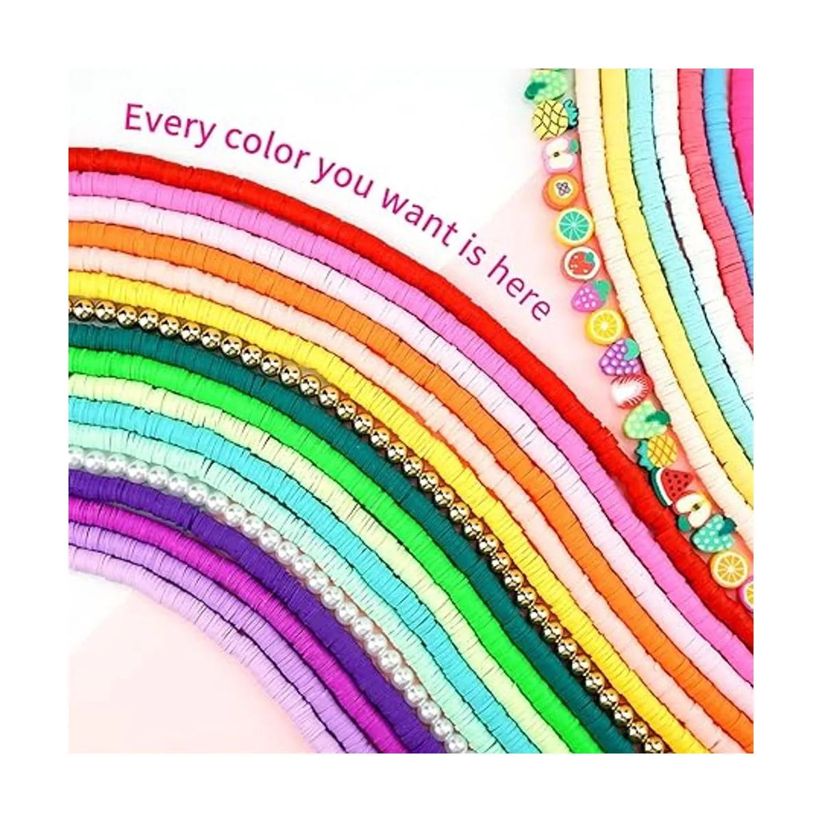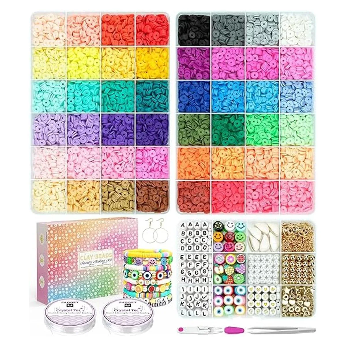 Paodey Juego de 12000 cuentas de arcilla para hacer pulseras, 48 colores, 3 cajas de cuentas de arcilla polimérica, kit de fabricación de joyas con cuentas Heishi preparadas y cuerdas elásticas, regalo de manualidades para niñas de 6 a 12 años