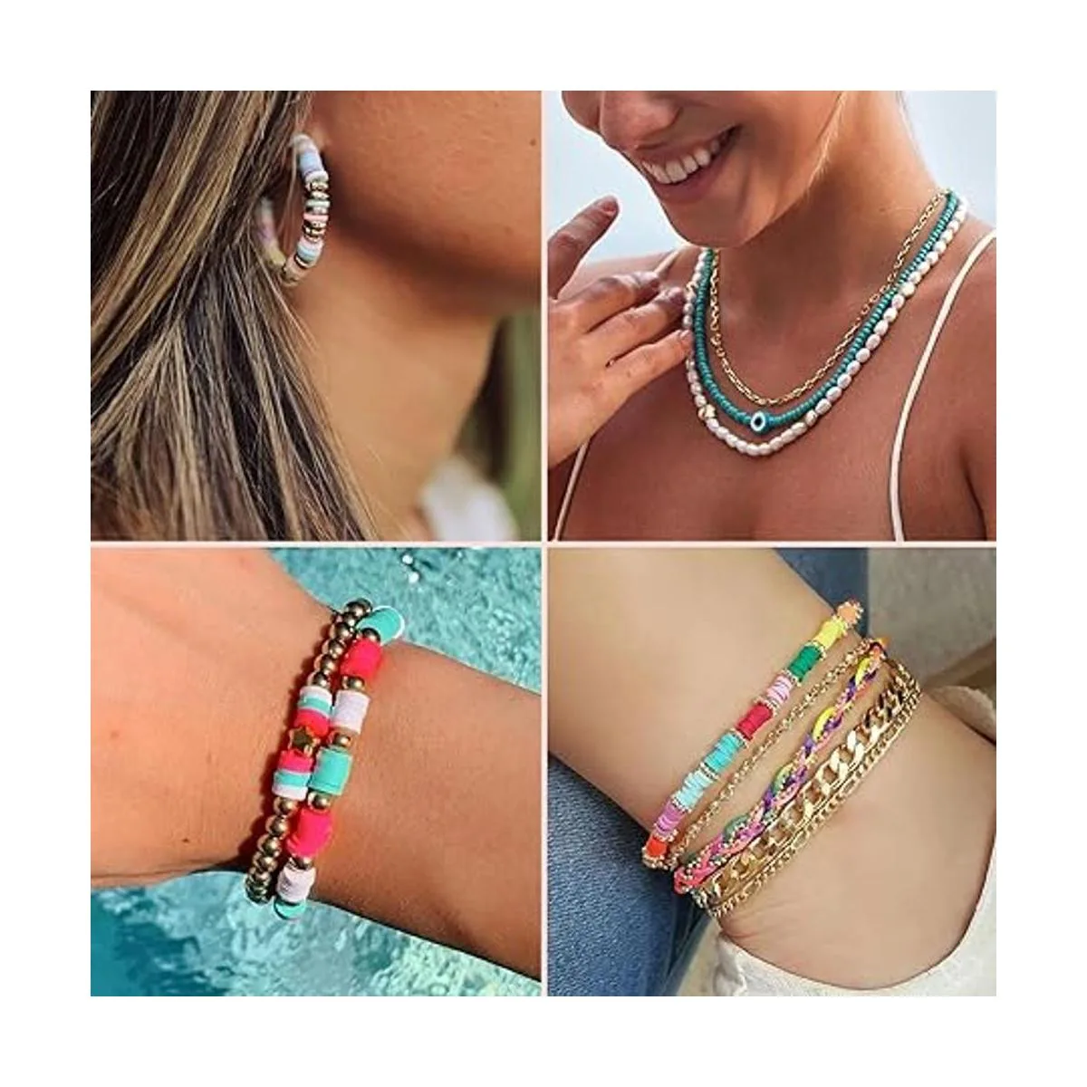 Material de alta calidad y colores similares al arco iris: 48 colores estrictamente seleccionados que satisfarán todas tus necesidades de bricolaje. La creatividad es más importante que las habilidades aquí para la fabricación de joyas de pulseras. Los kits de cuentas Heishi son ligeros, cómodos de llevar y están hechos de arcilla polimérica, no tóxicos, no se decoloran fácilmente, impermeables, por lo que puedes usarlos en todo, desde la playa, piscina o baño.