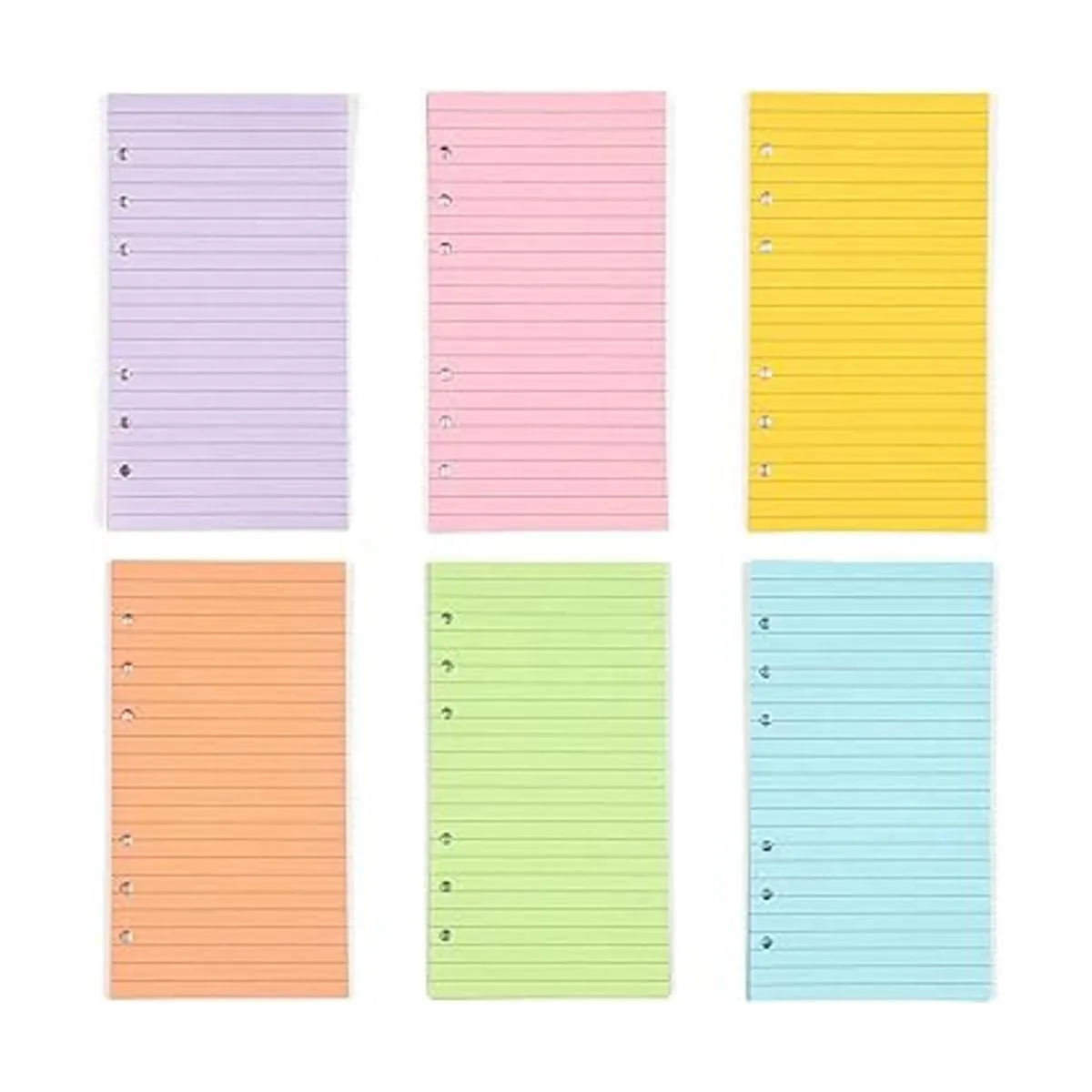Papel de recambio: anota pensamientos y notas en estas hojas de papel de 6 agujeros en 6 colores brillantes