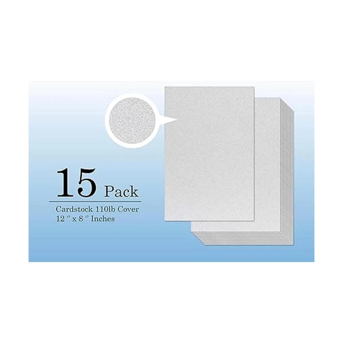 Papel de cartulina con purpurina plateada, paquete de 15 papeles con purpurina para proyectos de manualidades, decoraciones de fiesta de cumpleaños, álbumes de recortes, doble cara, cubierta de 110 libras, 8 x 12 pulgadas