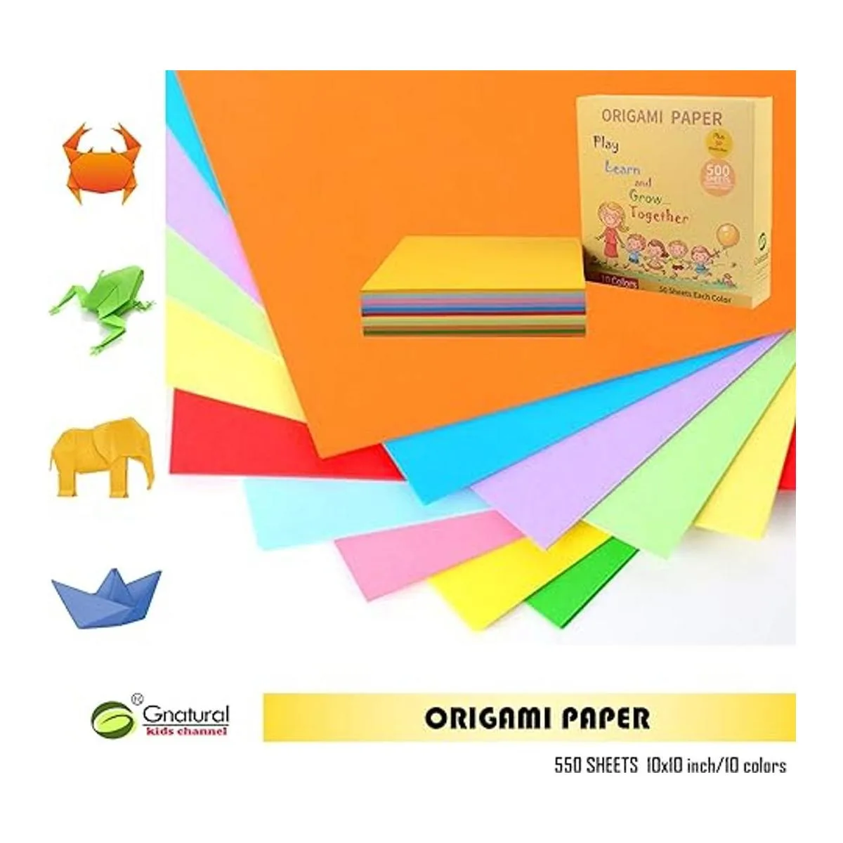 Papel de origami de 24 libras, 10 x 10 pulgadas, papel de origami de 10 colores, hecho a mano, papel cuadrado para niños, escuela, bricolaje, artes y manualidades, 100 hojas