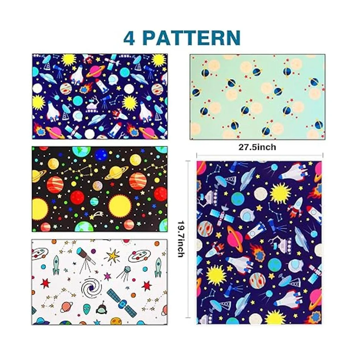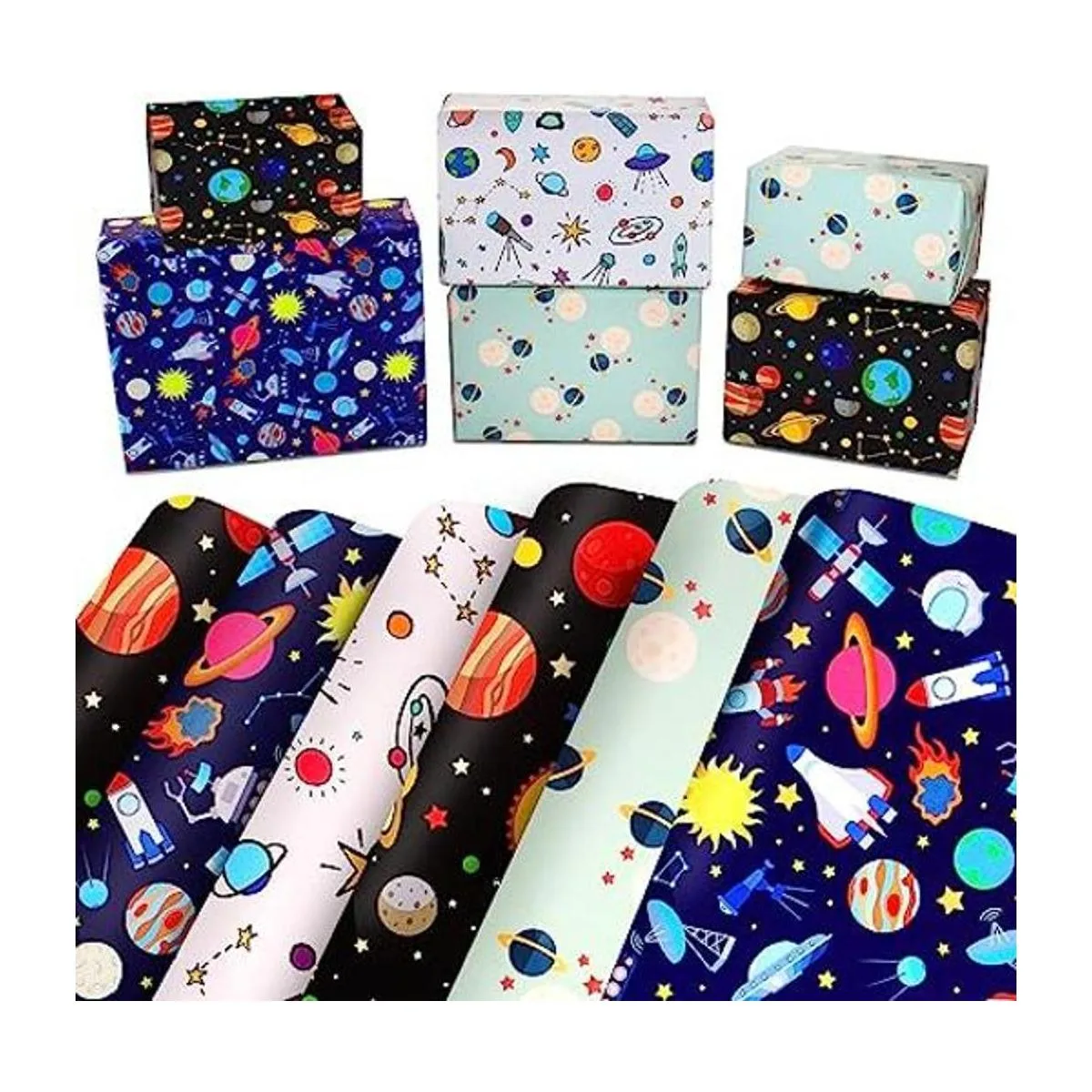 Medidas del juego de papel de regalo espacial: cada hoja mide 28 x 20 pulgadas, cada hoja de papel de regalo para niños es de tamaño para envolver regalos medianos y pequeños, por favor, presta atención al tamaño para tu necesidad