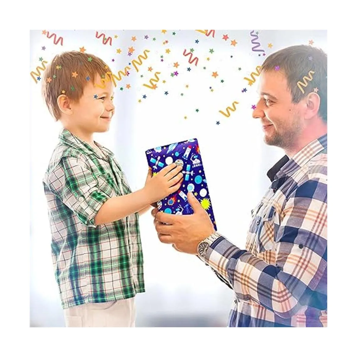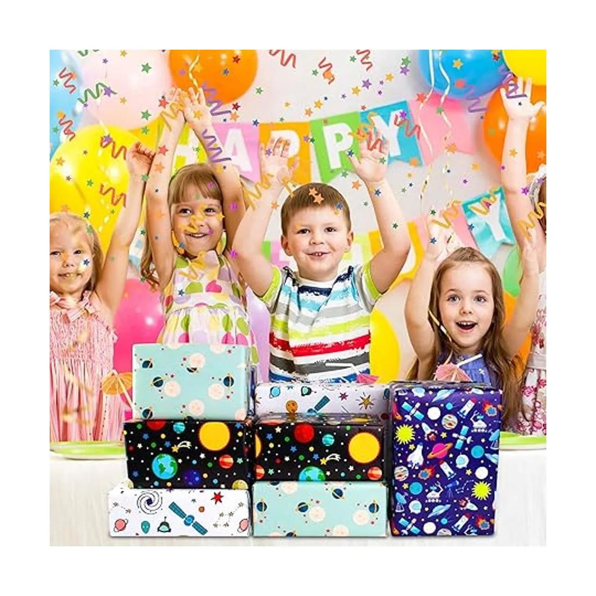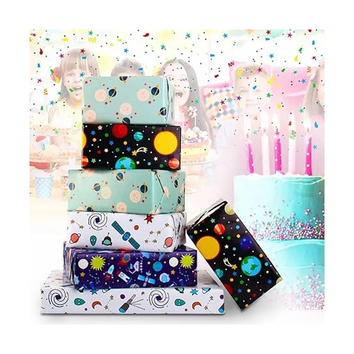 Hojas gruesas de papel de regalo para niños: a diferencia del papel de regalo de seda que es fácil de romper, el grueso y no se rompe ni rasga fácilmente. El papel de regalo galáctico de cumpleaños puede empaquetar tu regalo bien para tus amigos.