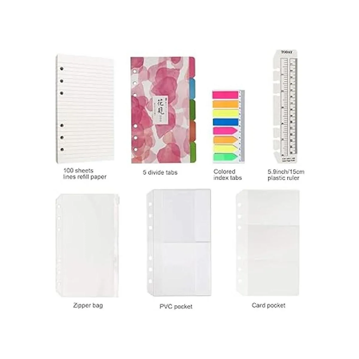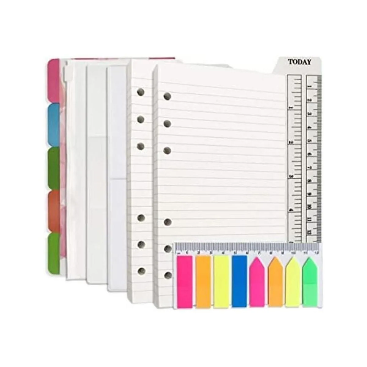 Papel de repuesto A6, 100 hojas de papel forrado, 6 agujeros perforados, 5 separadores de carpeta, 3 bolsas de PVC, 160 pestañas de índice de colores, 1 buscador de páginas rápido, para planificadores personales Filofax, 3.75 x 6.75 pulgadas