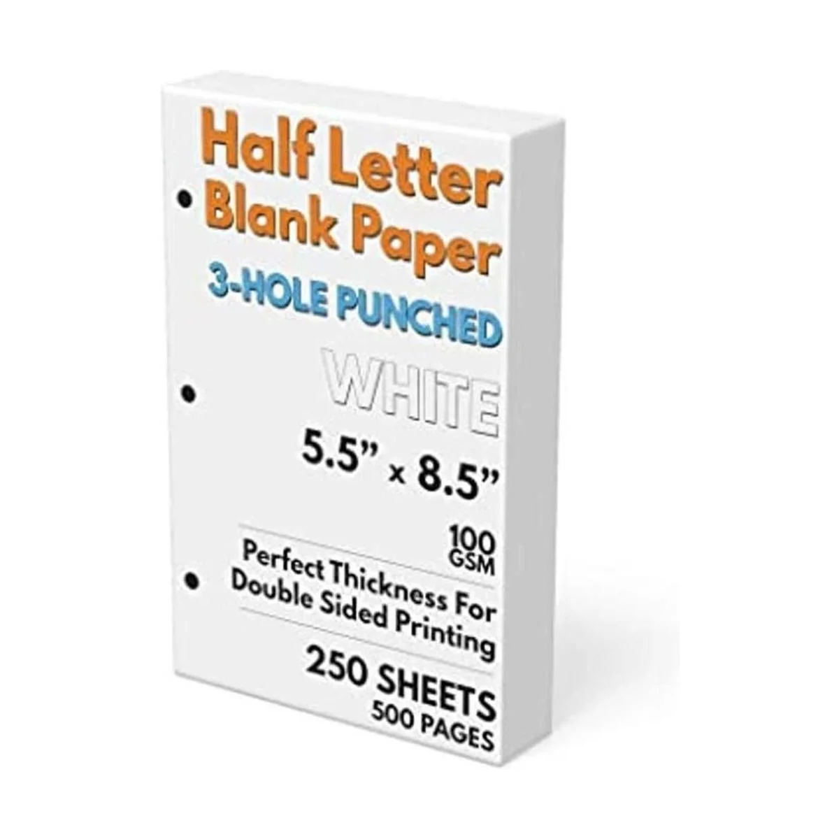 Papel en blanco de media letra, perforado de 3 agujeros, 250 hojas500 páginas, 3.53 ozm, recambio de carpeta de papel de impresora, 5.5 pulgadas x 8.5 pulgadas.