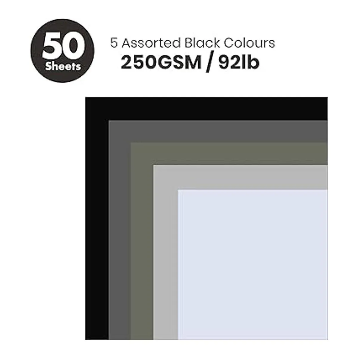Paquete: 50 hojas, 5 colores negros surtidos con cubierta de 8.82 oz/m/92 libras