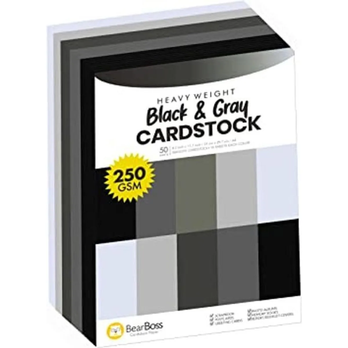 Papel grueso de cartulina de color negro y gris, 50 hojas, 8.5 x 11 pulgadas, peso pesado de 92 libras para manualidades y fabricación de tarjetas de bricolaje