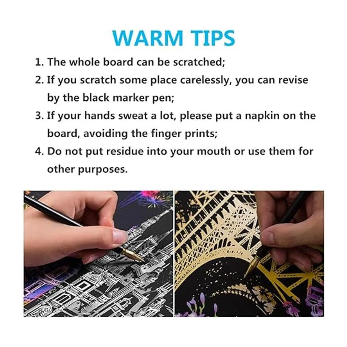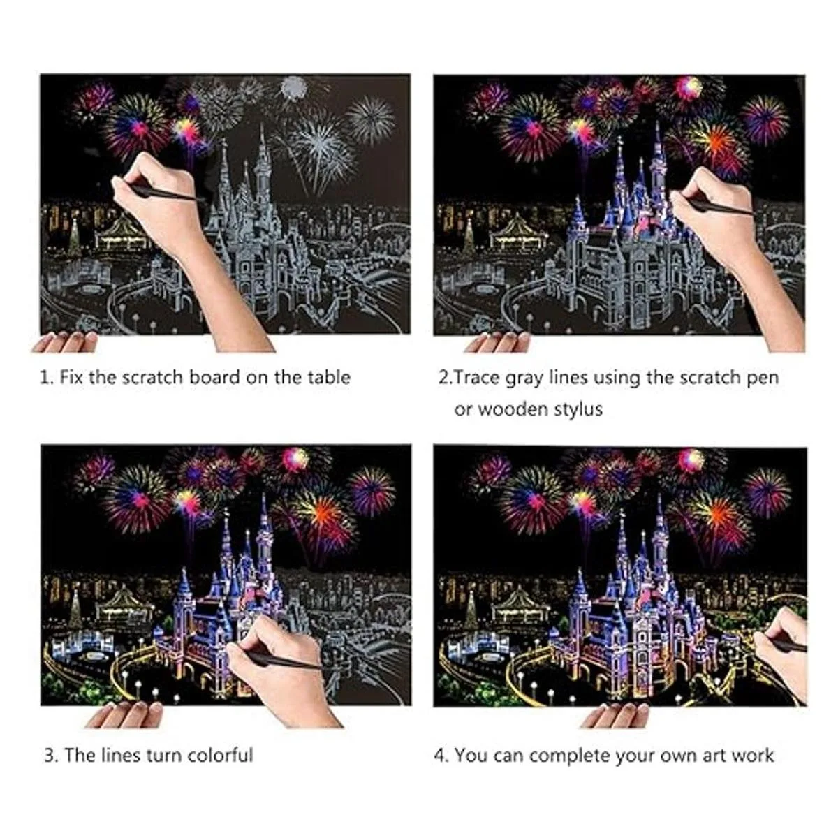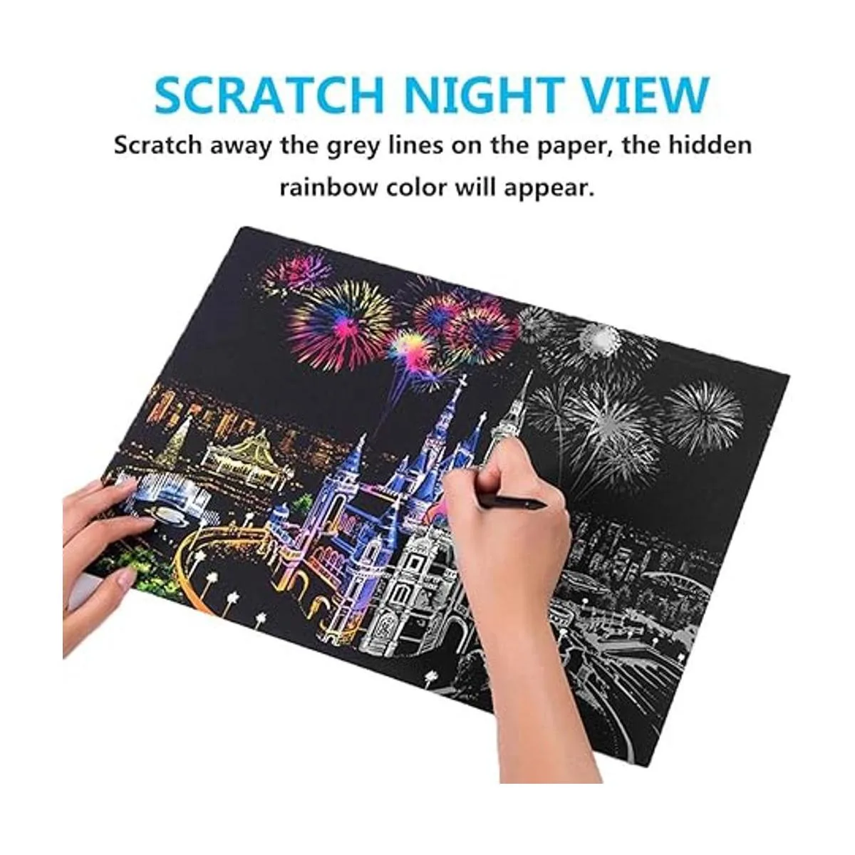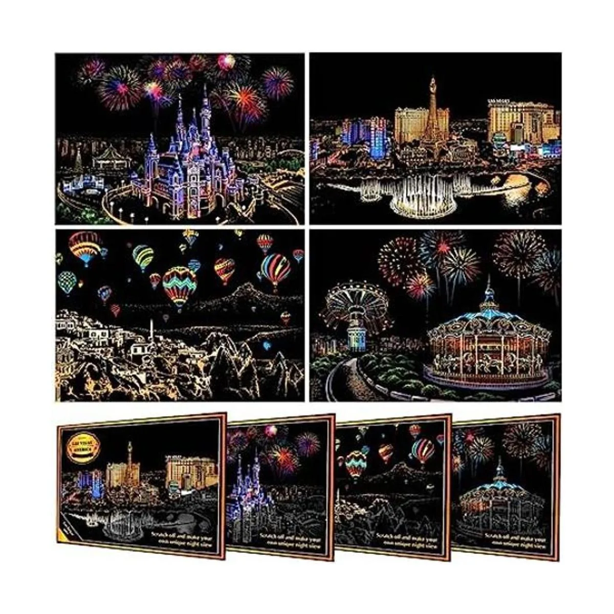 Papel para rascar con diseño de arco iris, para manualidades, vista nocturna, para adultos y niños, 4 paquetes, 16 x 11.2 pulgadas