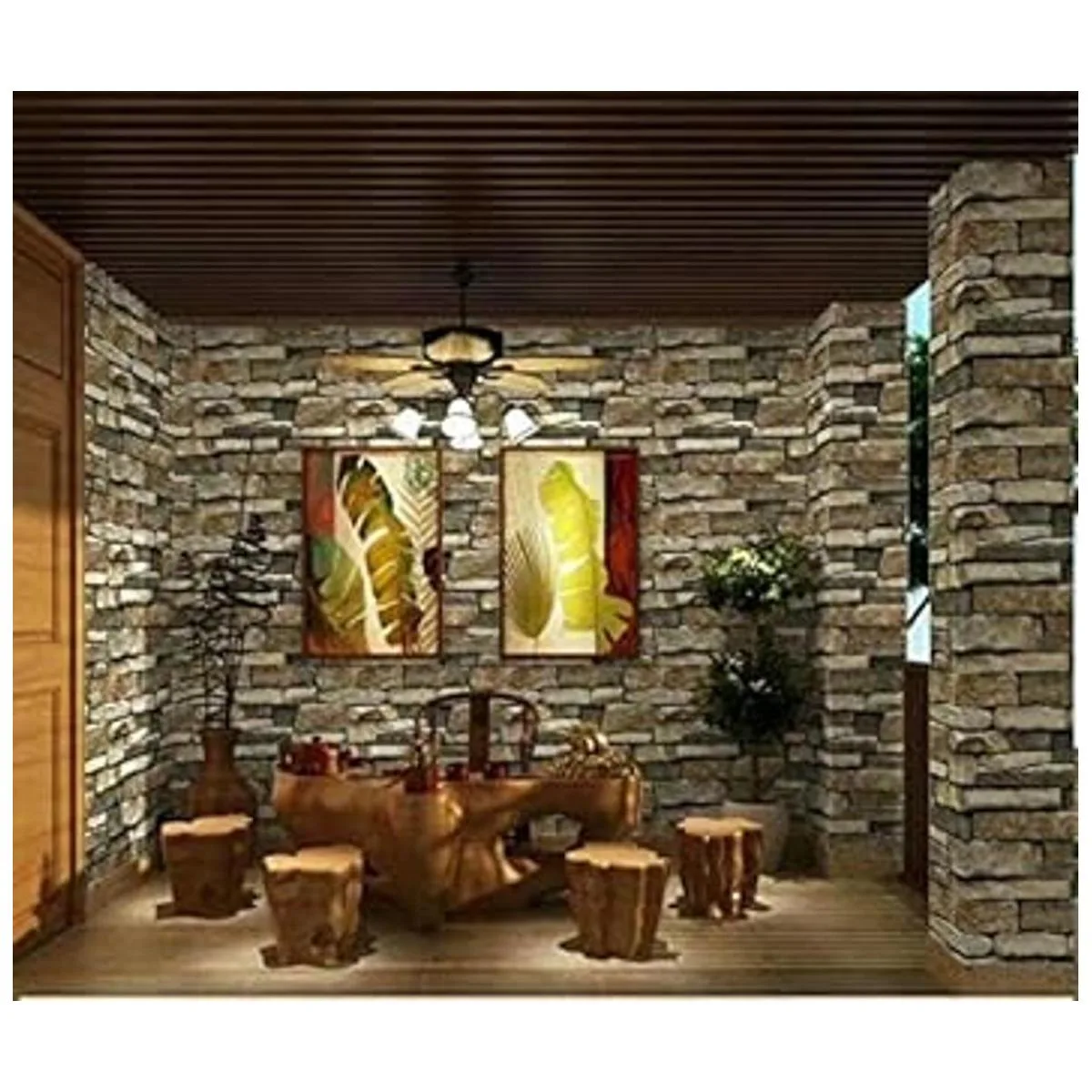 Características: textura de piedra realista, resistente al agua y al aceite, fácil de limpiar, resistente al desgaste, fuerte poder de cobertura