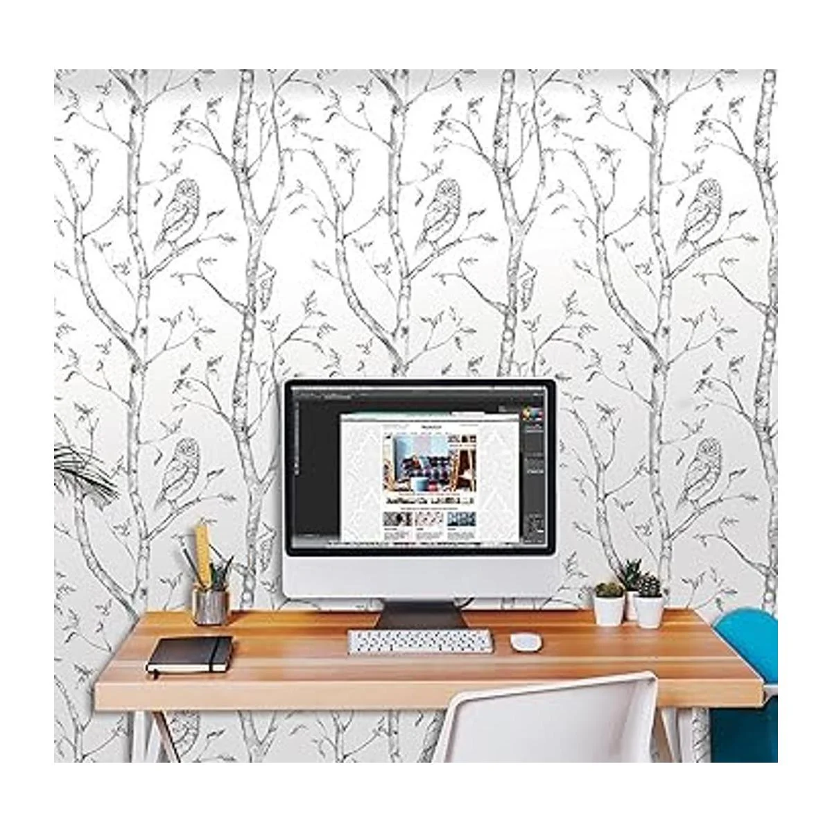 Papel tapiz adhesivo con diseño de bosque de Brewster, Gris, NU1412