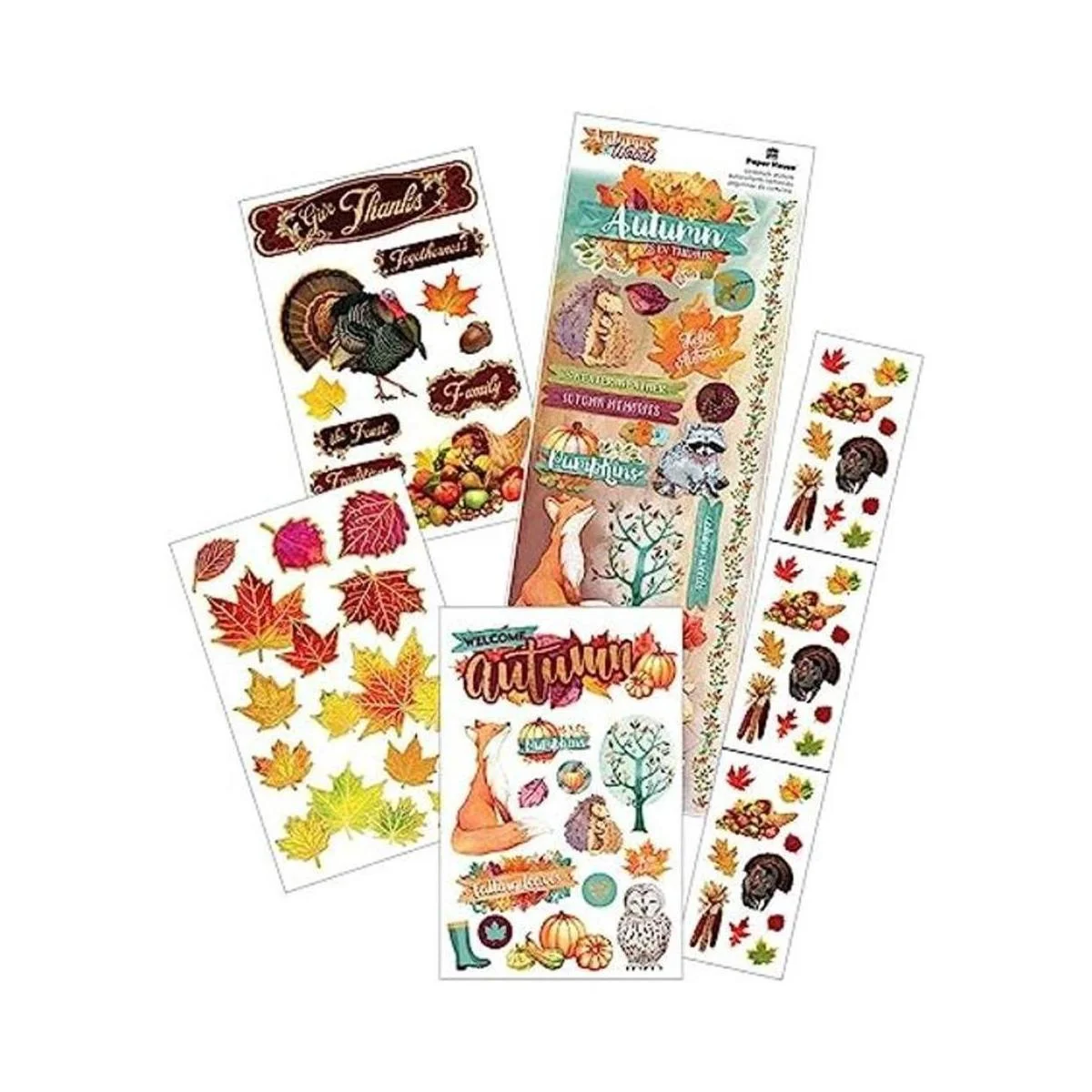 Incluye suficientes calcomanías para hacer múltiples proyectos de otoño y Acción de Gracias