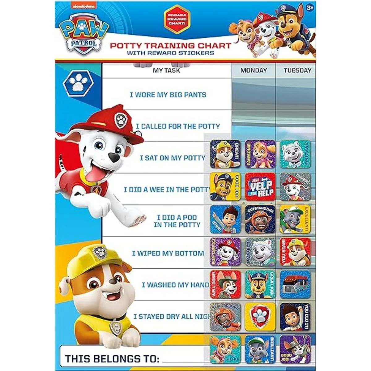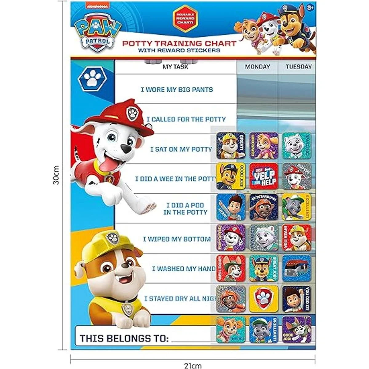 Paper Projects 01.70.30.025 Paw Patrol Tabla de recompensas de entrenamiento para ir al baño y al inodoro, 11.7 in x 16.5 in