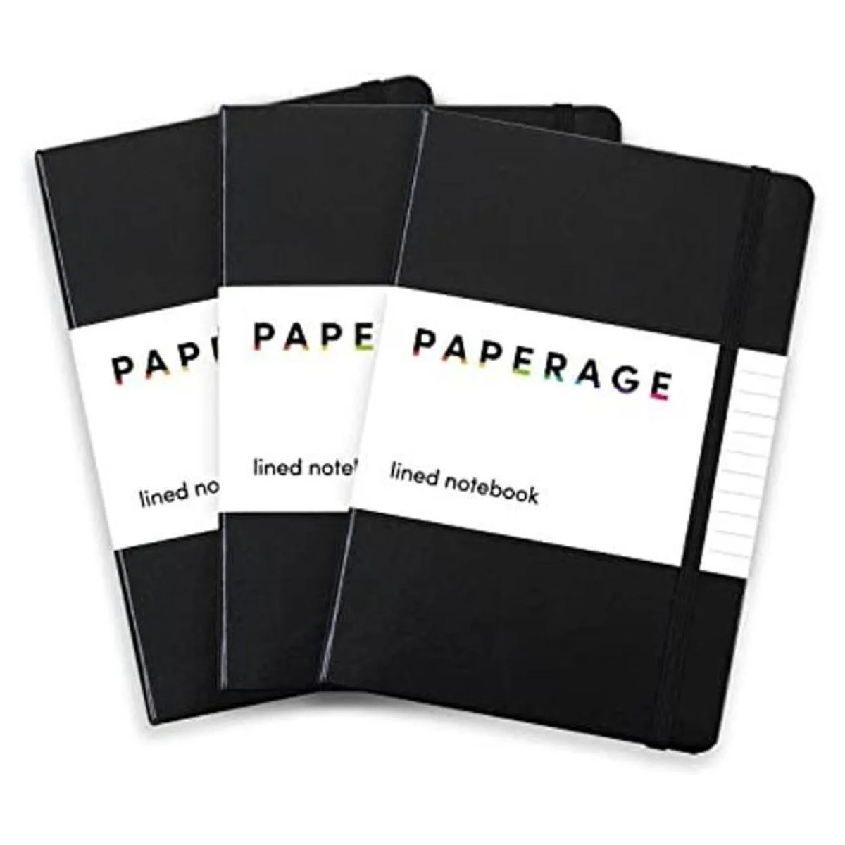PAPERAGE Paquete de 3 cuadernos de líneas, tapa dura, tamaño mediano 5.7×8 pulgadas, papel 100 gsm de grosor, para oficina, hogar, escuela o negocio negro, rayado