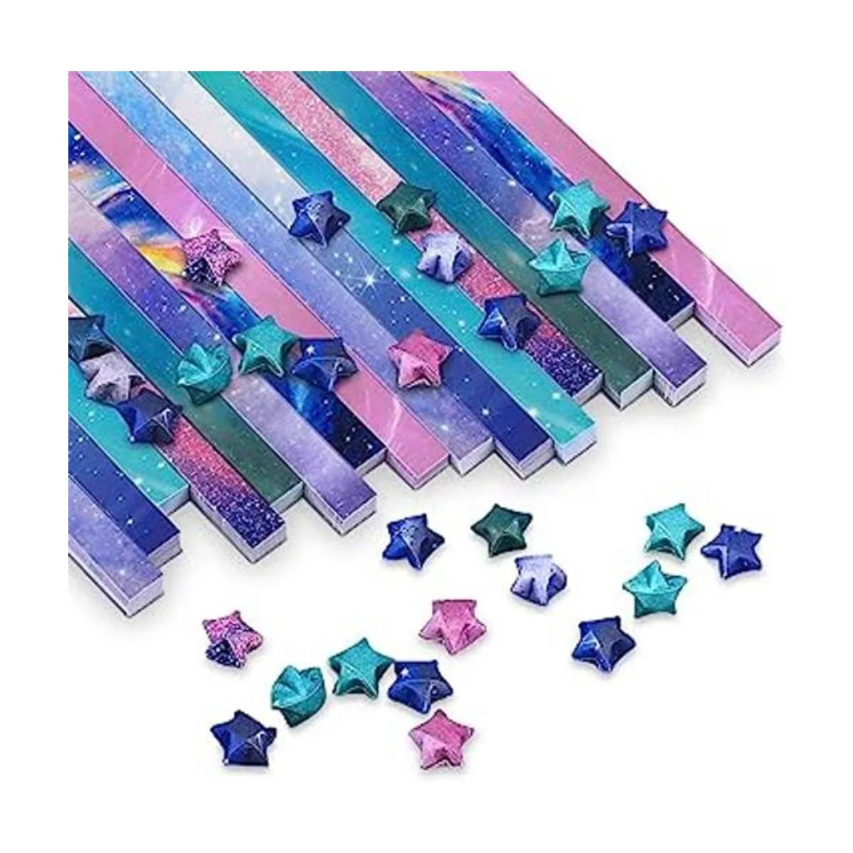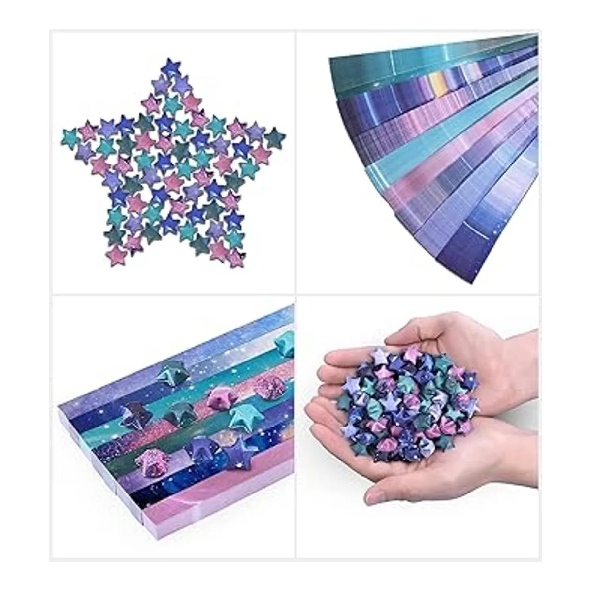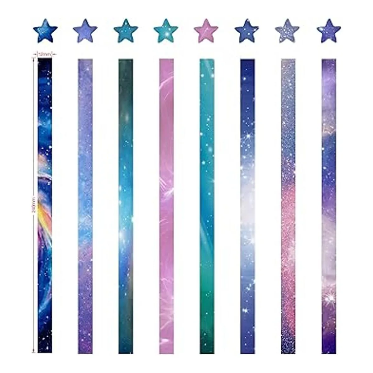 El paquete incluye: 800 hojas de papel de estrellas de origami, 8 diseños diferentes de hermoso cielo espacial exterior galaxia para manualidades de papel, niños.