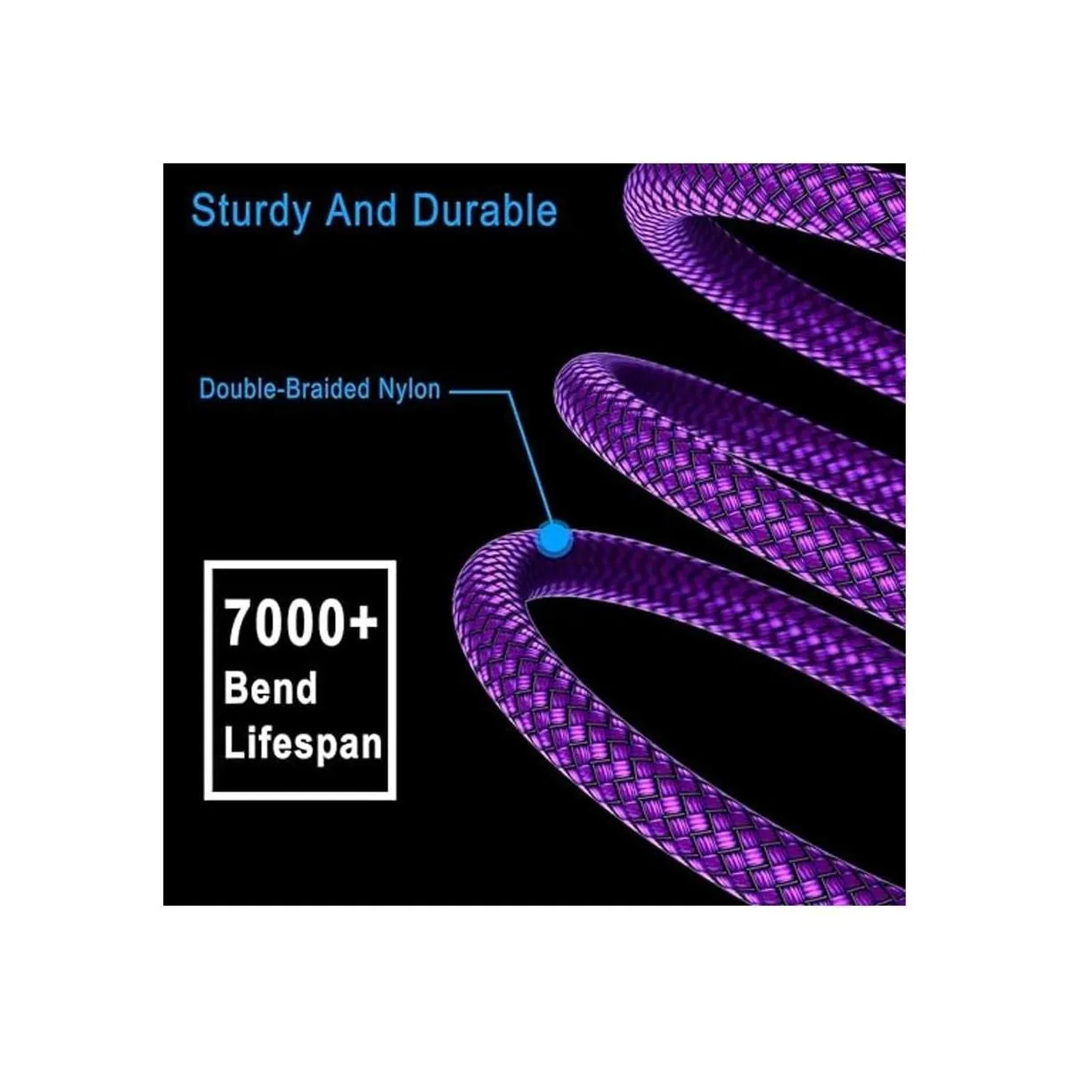 Extremadamente duradero: nuestro producto es un cable duradero y resistente en el que puedes confiar, con un exterior de doble trenzado y un núcleo de fibra de aramida de alta calidad. Cuenta con una vida útil probada de más de 7000 dobleces, lo que permite soportar el desgaste diario. Los conectores de aleación de aluminio también tienen cuellos reforzados para reducir el daño por flexión.