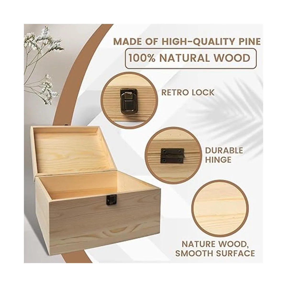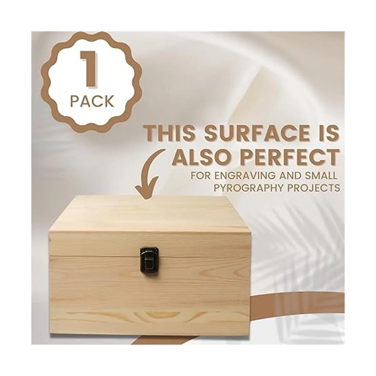 Paquete de 1 caja grande de madera sin terminar de 10.8 x 7 x 8 x 5.7 pulgadas con tapa con bisagras y cierre frontal para proyectos de arte de bricolaje, manualidades, recuerdo de madera, pintura fácil de manchar, combustión de madera