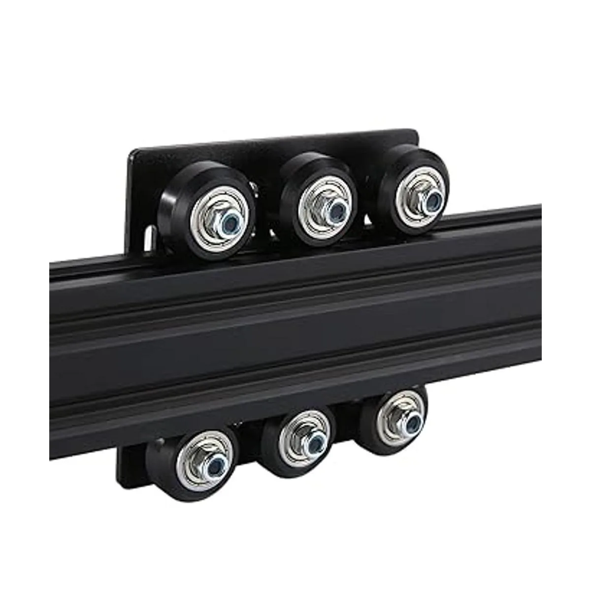 La placa de pórtico está hecha de material de aluminio, tratamiento negro, la carcasa de las ruedas está hecha de POM
