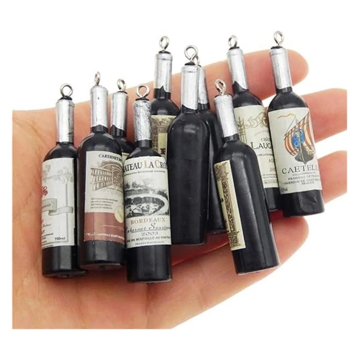 Paquete de 10 botellas de vino tinto de resina vintage para manualidades, pendientes, cuentas, collares, colgantes, llaveros, abalorios, bricolaje, joyería, 2.047 x 0.433 x 0.433 in