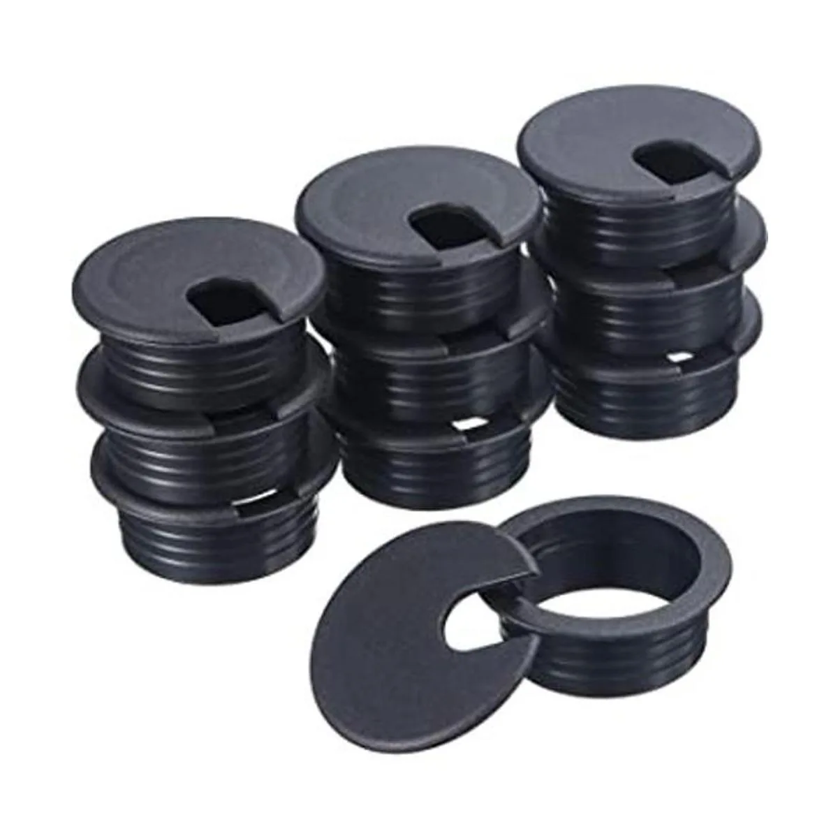 Cantidad abundante: 10 paquetes de ojales de escritorio negros para la gestión de cables, hechos de plástico resistente, duradero de usar, organiza tu escritorio y mantiene tu superficie de trabajo limpia