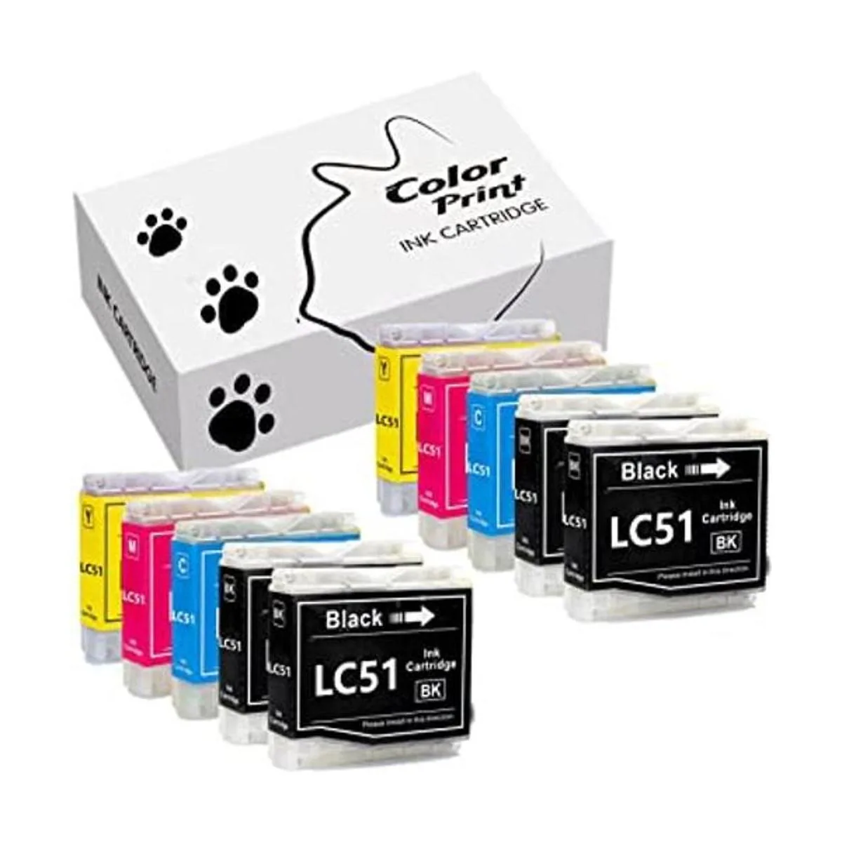 Contenido del paquete: 10 cartuchos de tinta compatibles con LC51 LC51 4 negros, 2 cian, 2 magenta, 2 amarillos