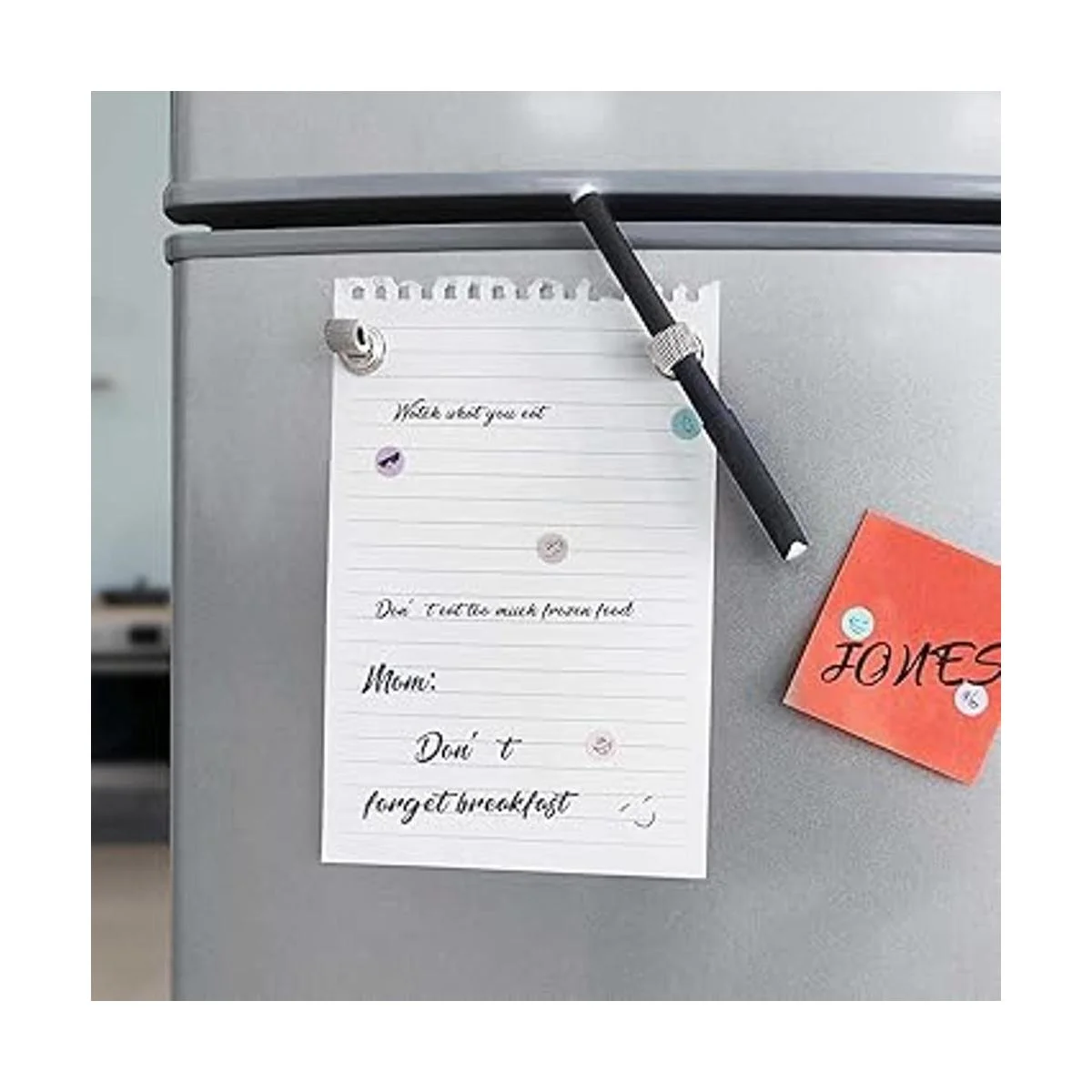 Múltiples usos: el clip de soporte para bolígrafos se puede utilizar para refrigerador, pizarra, pizarra de borrado, tablón de anuncios, mapa, nevera, calendario y cualquier otra superficie de metal en el hogar, cocina y oficina. Se utiliza para colocar listas de compras, listas de compras, fotos, notas y notas.