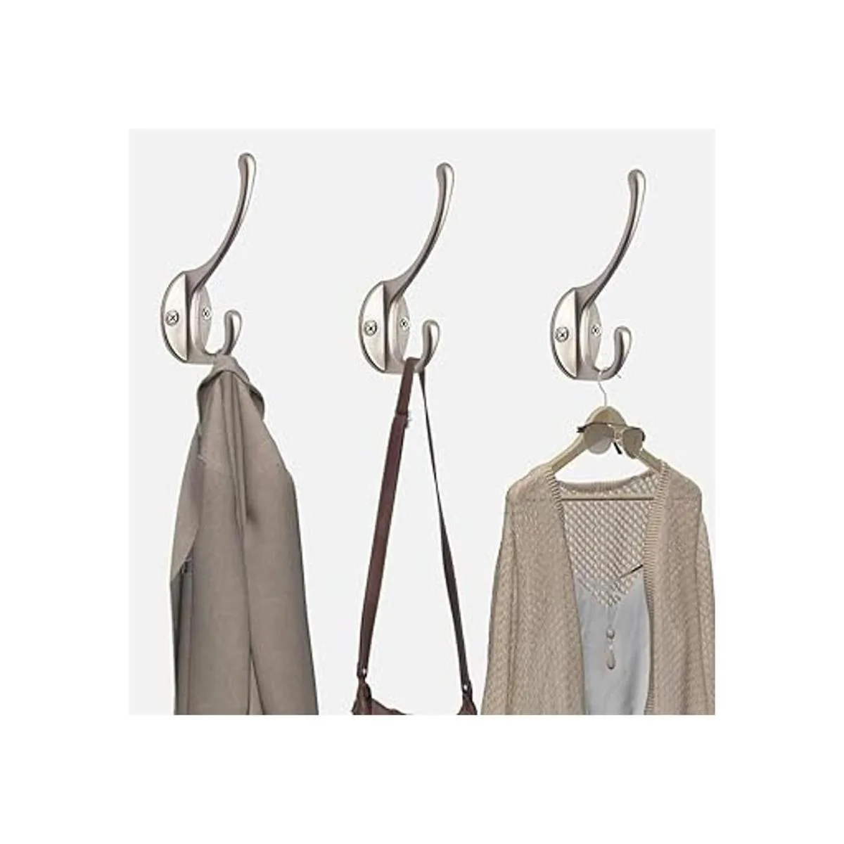 Material de alta calidad: estos ganchos de doble punta resistentes están hechos de material de zinc fundido a presión de buena calidad, los tornillos están hechos de hierro, no se oxida, puede soportar fácilmente hasta 35 libras de peso. Duro y duradero, puede soportar ampliamente abrigos, bufandas, paraguas, bolsos, toallas, llaves, sombreros, tazas, así como calcetines de Navidad y corona de Navidad