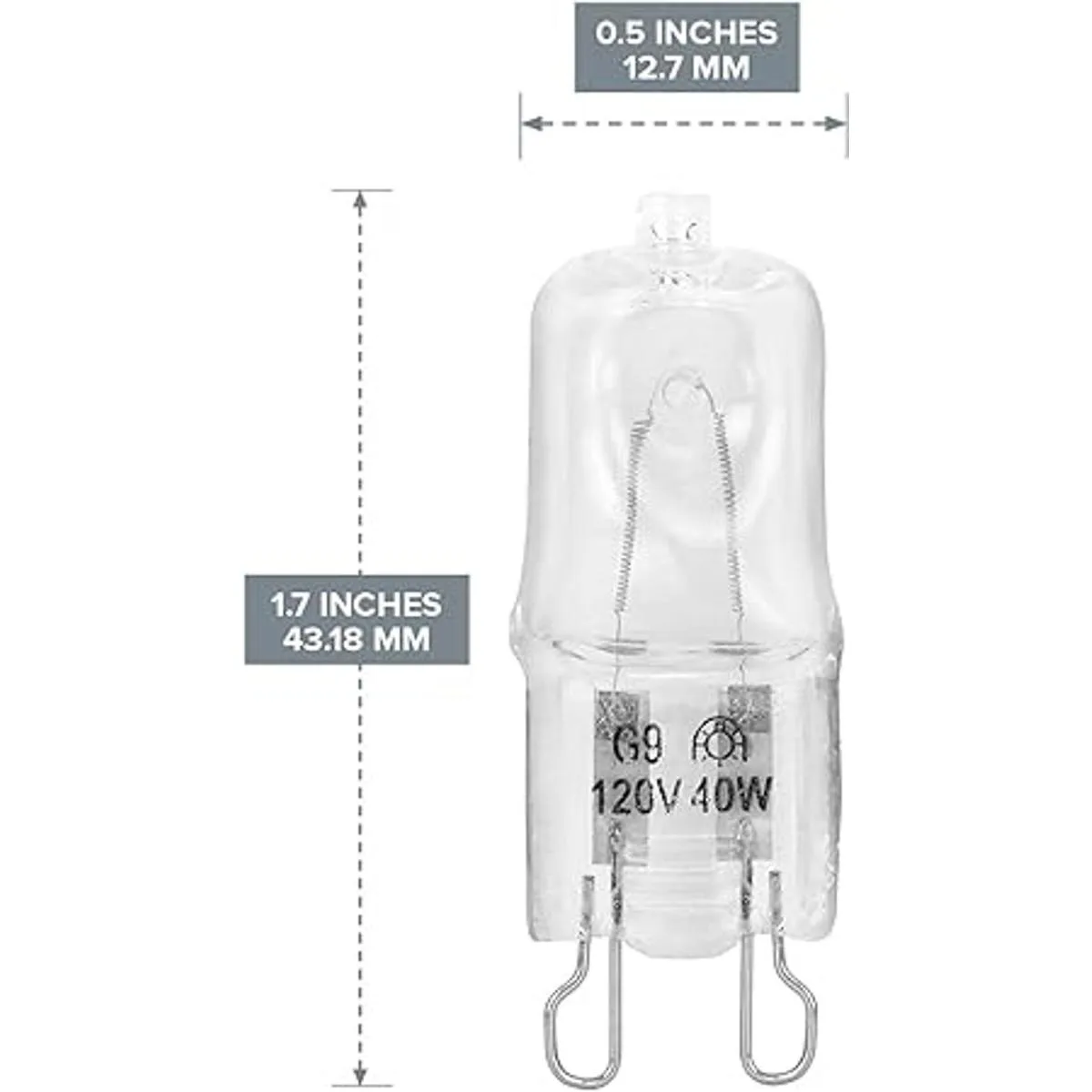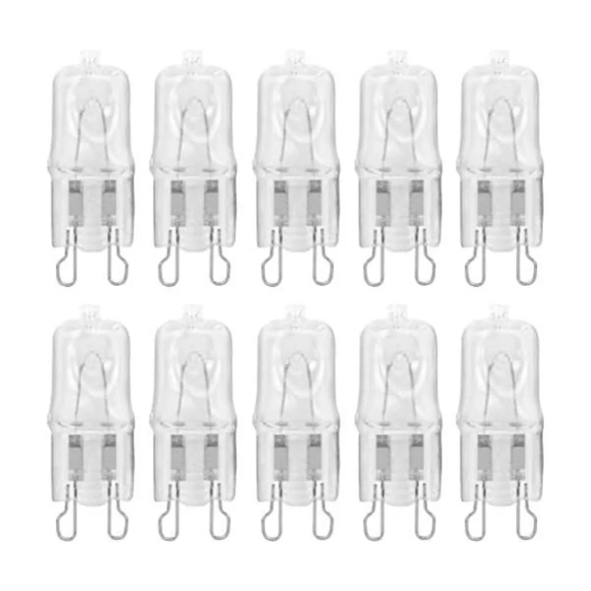 Reemplazos directos para todos los accesorios de luz G9 y enchufes. Cuenta con 2 puntas en bucle que están separadas 0.354 in. Filamento de tungsteno de alta calidad. Utiliza el ciclo halógeno y las bombillas incandescentes típicas de larga duración en toda la vida y brillo.