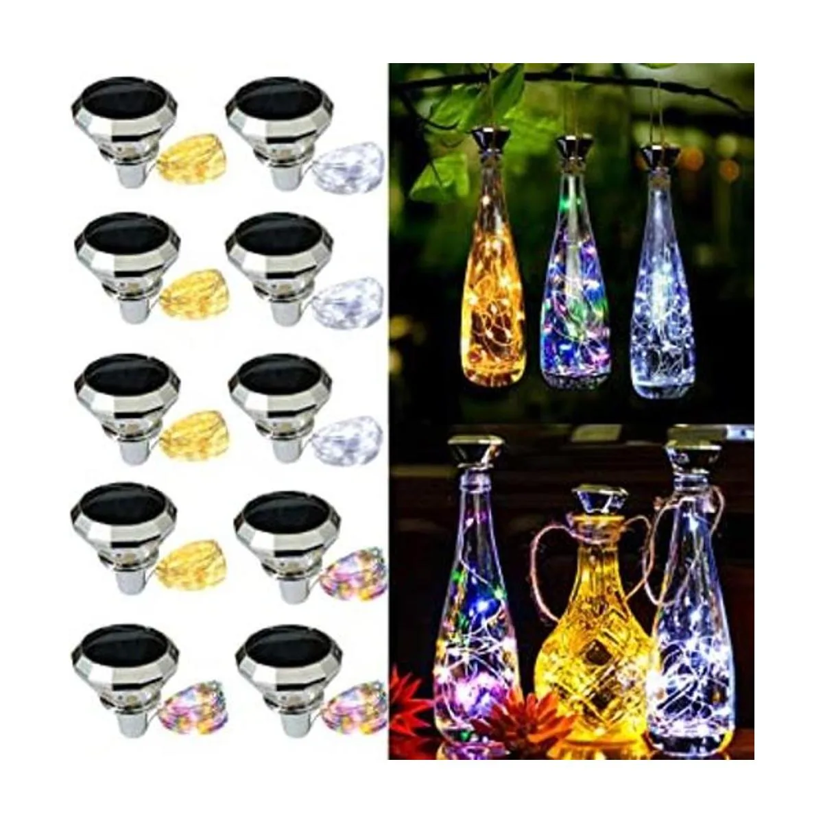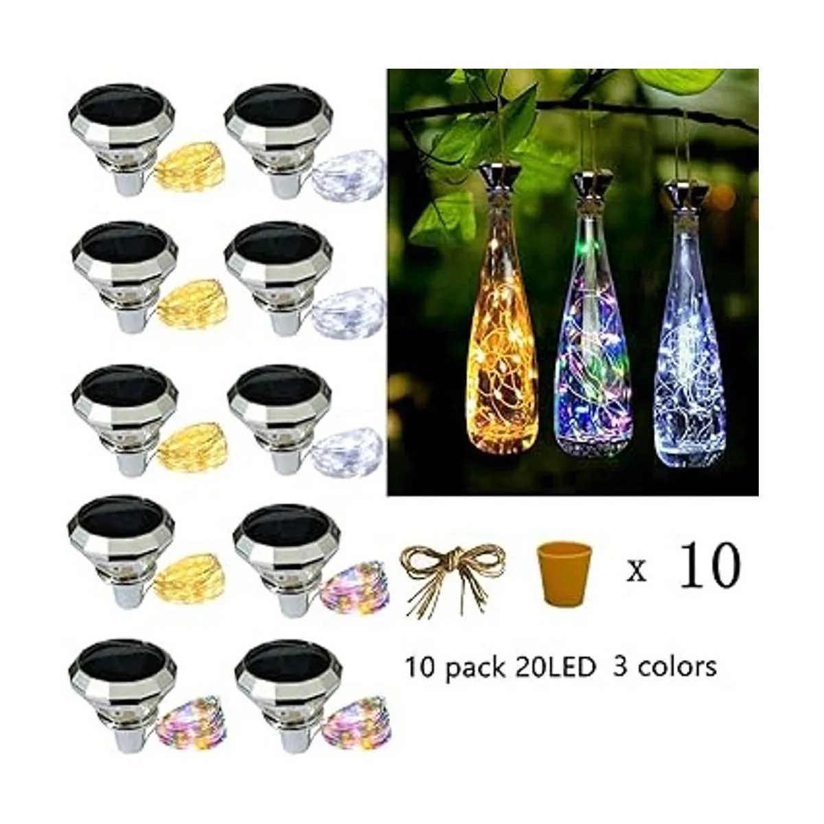 Paquete de 10 luces solares para botellas de vino con diamantes estrellados, impermeables, multicolor, para exteriores, 3 colores, adecuadas para la mayoría de las botellas de vino, para jardín, terraza, decoración de fiesta