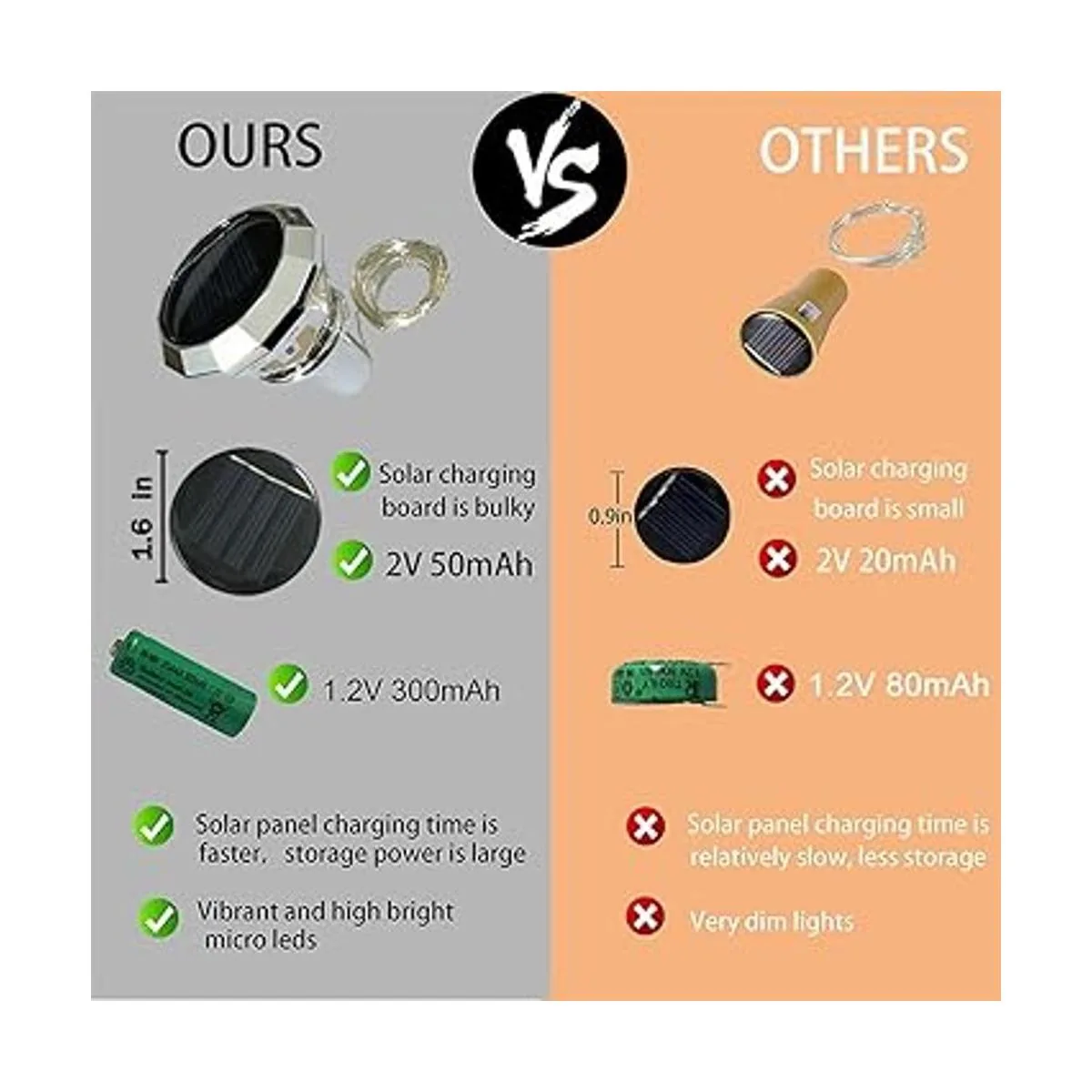Mejor efecto decorativo: las luces solares para botellas están hechas de alambre plateado ultrafino de alta calidad, que es mejor que el alambre de cobre ordinario, y esta lámpara solar para botellas se puede diseñar fácilmente en cualquier forma que te guste. Adecuado para fiestas, bodas, barbacoas, Halloween, Navidad, cuadrado, jardín, decoración interior y exterior, etc. También es un gran regalo para niños, amigos y familiares.