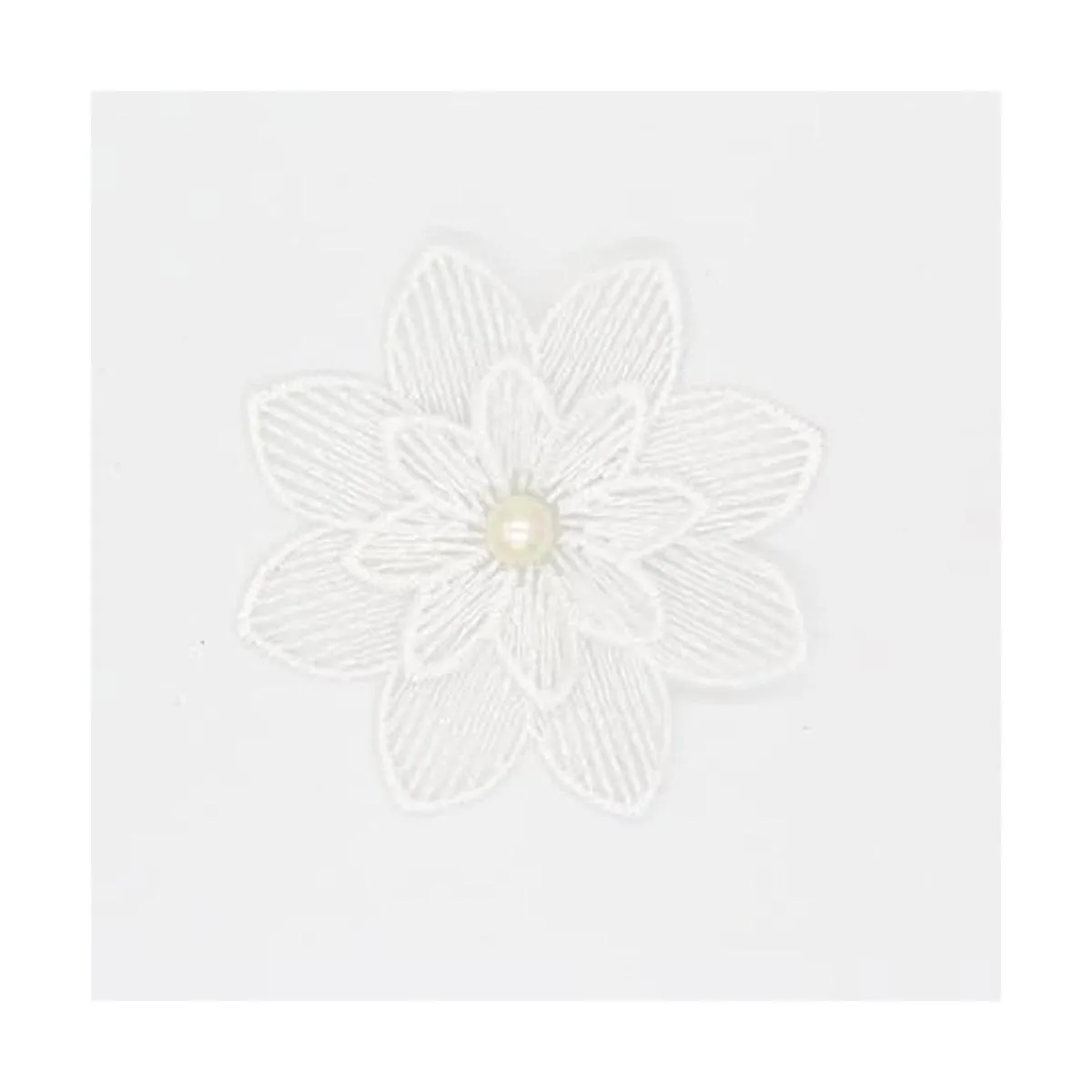 Paquete de 10 parches bordados de flores blancas para coser o para boda, vestido de novia bordado, color blanco
