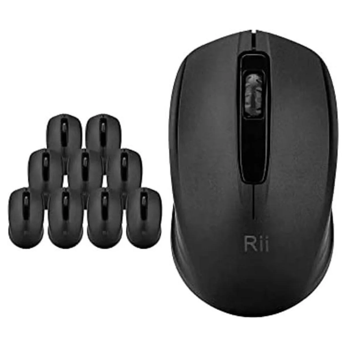 Paquete de 10 ratones inalámbricos Rii de 1000 DPI para PC, laptop, ventanas, oficina incluida en dongle USB inalámbrico negro