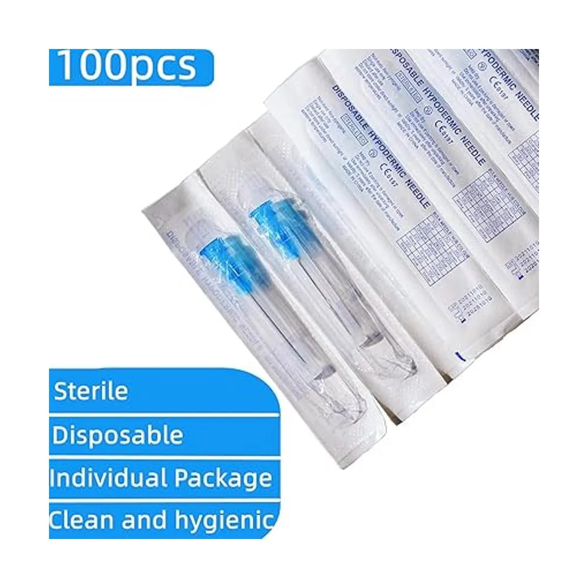 Contenido del paquete: 100 agujas selladas individualmente con tapa.