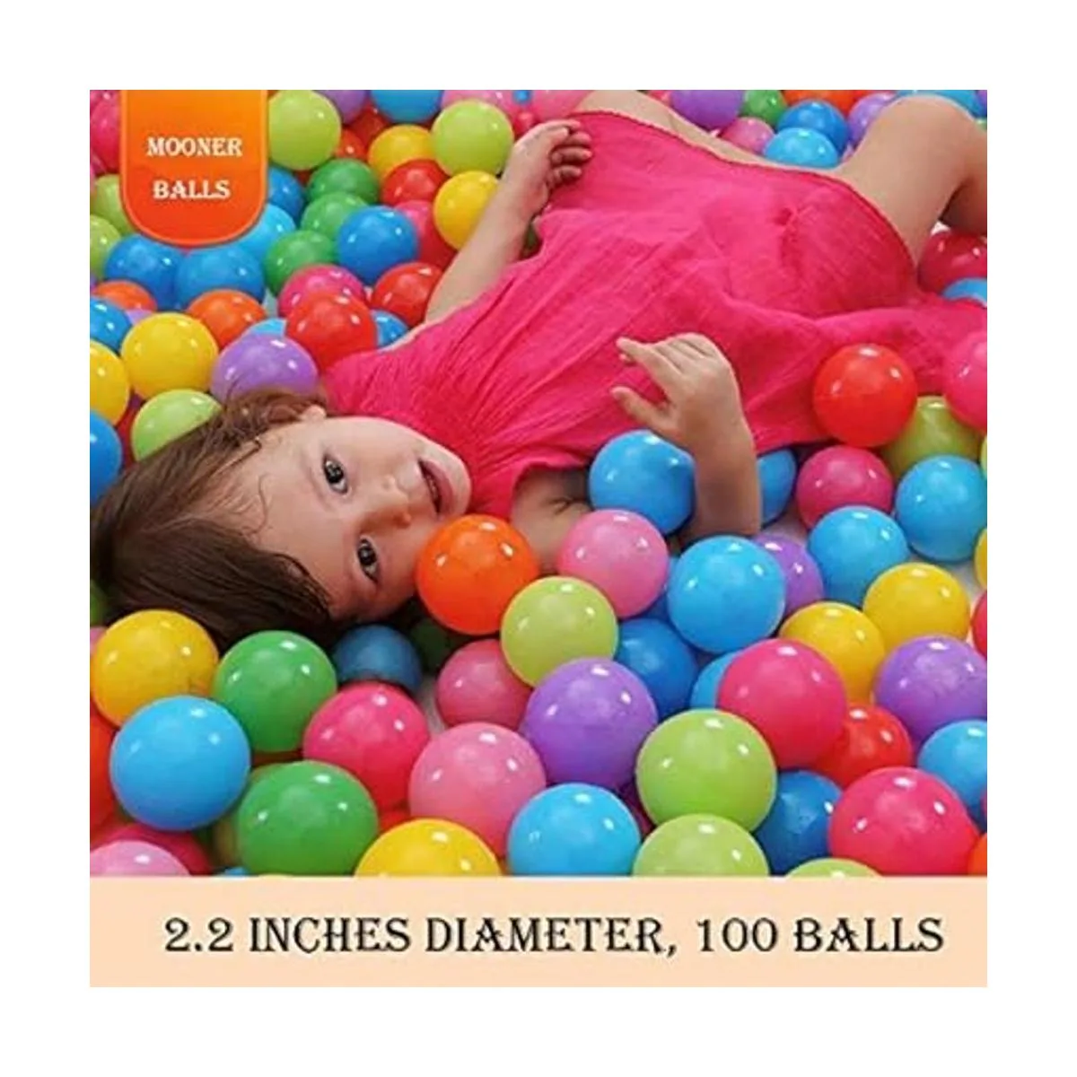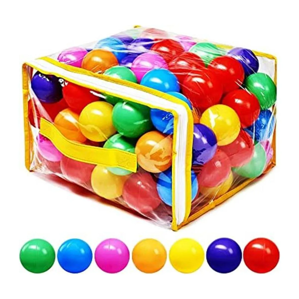 Paquete de 100 bolas de océano, sin ftalatos, sin BPA, plástico a prueba de aplastamiento, 7 colores brillantes en juguetes de juego reutilizables para niños con bolsa de almacenamiento