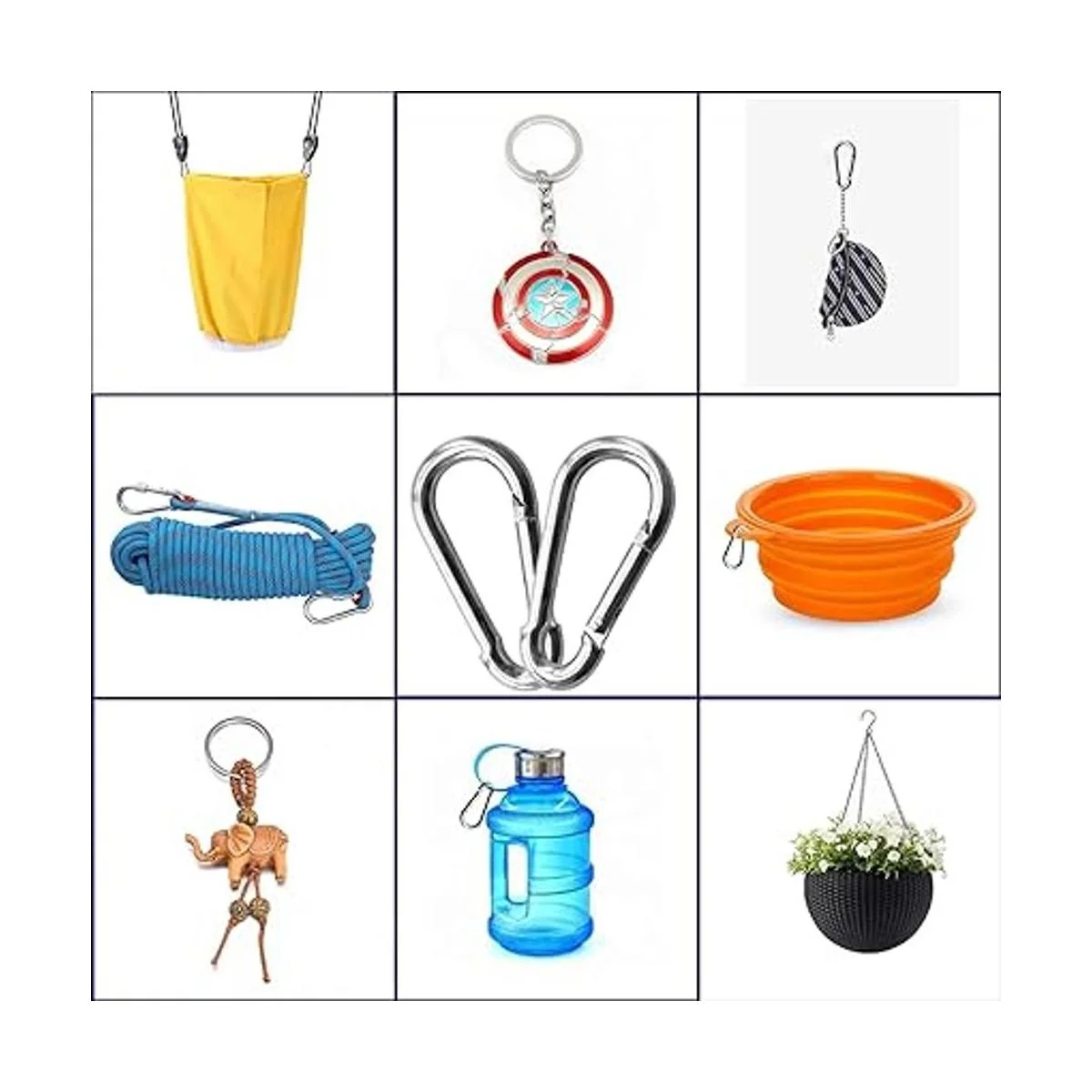 Cadena de seguridad y rápida: el mosquetón tiene una estructura fuerte y la puerta de resorte de cierre automático abierto con dientes entrelazados evita la apertura forzada por carga, alta seguridad y estable; la apertura y cierre suaves te permite fijar fácilmente llavero, accesorios de bricolaje, correa de mascotas y botellas de agua