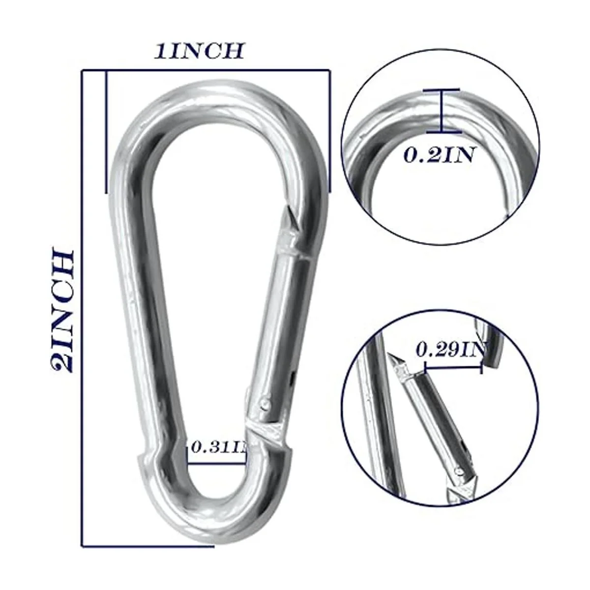 Paquete de 100 ganchos de resorte de 2.0 in: el paquete incluye 100 mosquetones de alta calidad, lo que permite una conexión y desconexión más rápidas, ampliamente utilizado para conector de llavero, mochila, correa de perro, bolsa de pesca colgante en kayak, equipo de equipo de interior y exterior