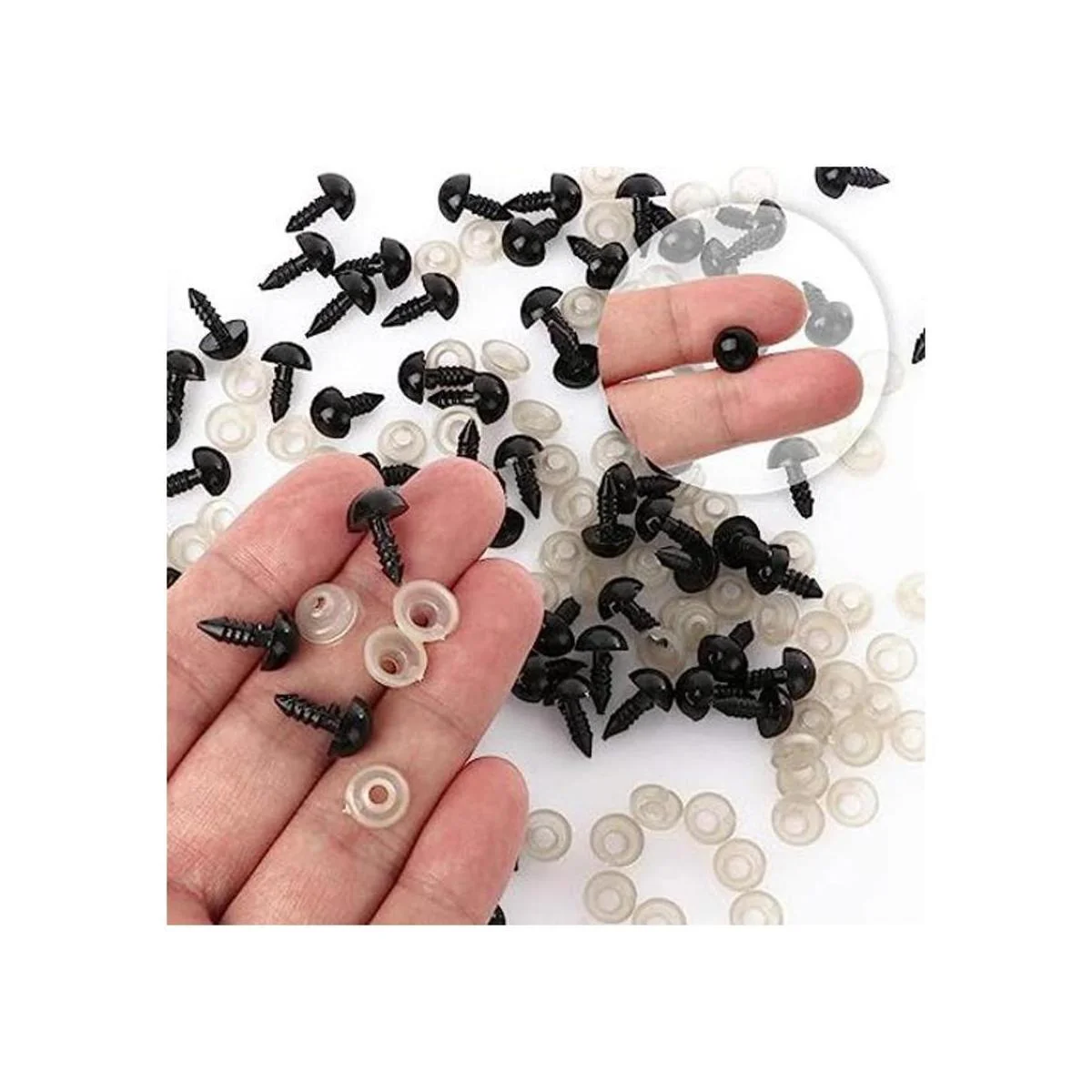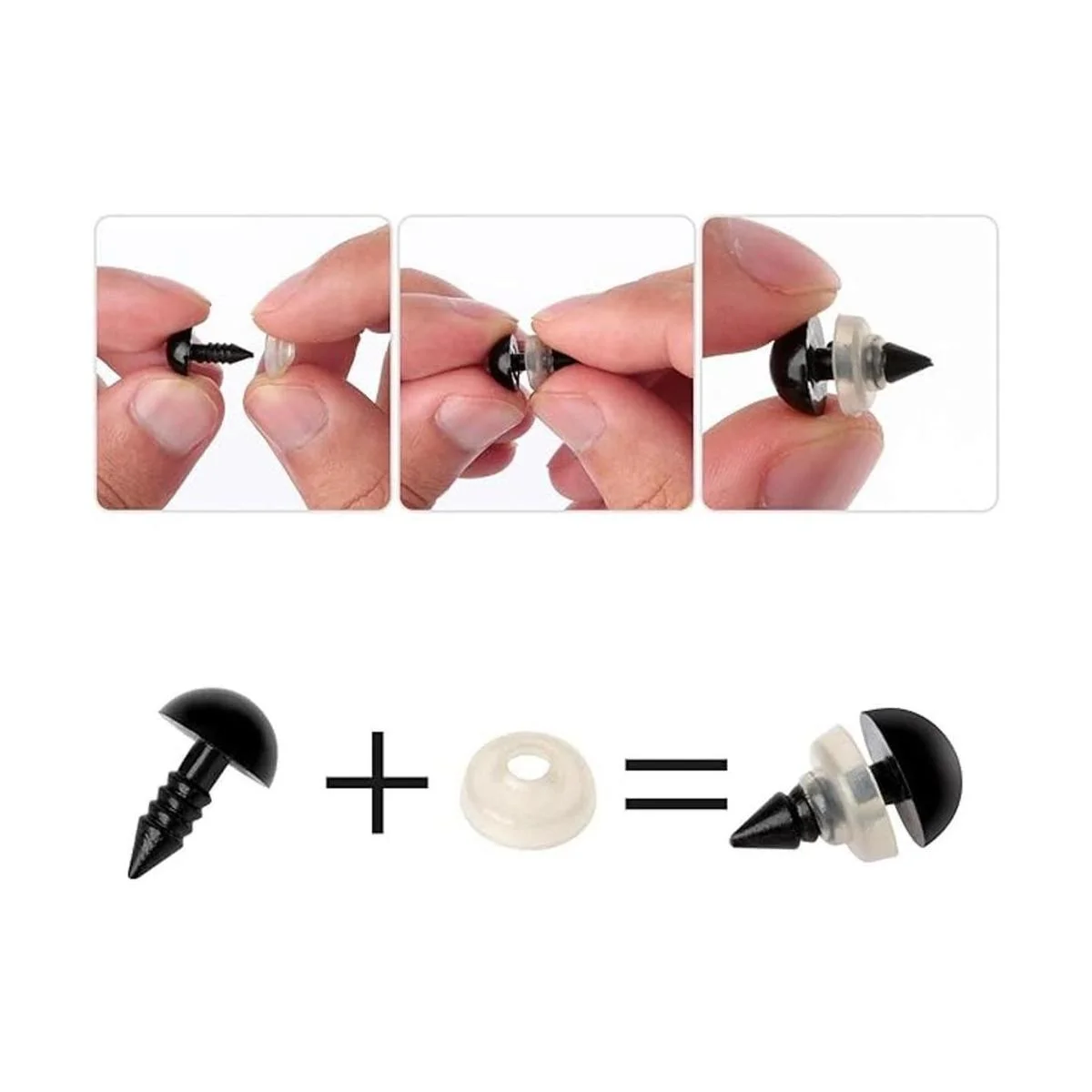 Fácil de usar: simplemente coloca los ojos de seguridad de plástico a través de arandelas de plástico, luego se pueden unir firmemente a estas arandelas para evitar que los ojos y la nariz se caigan.